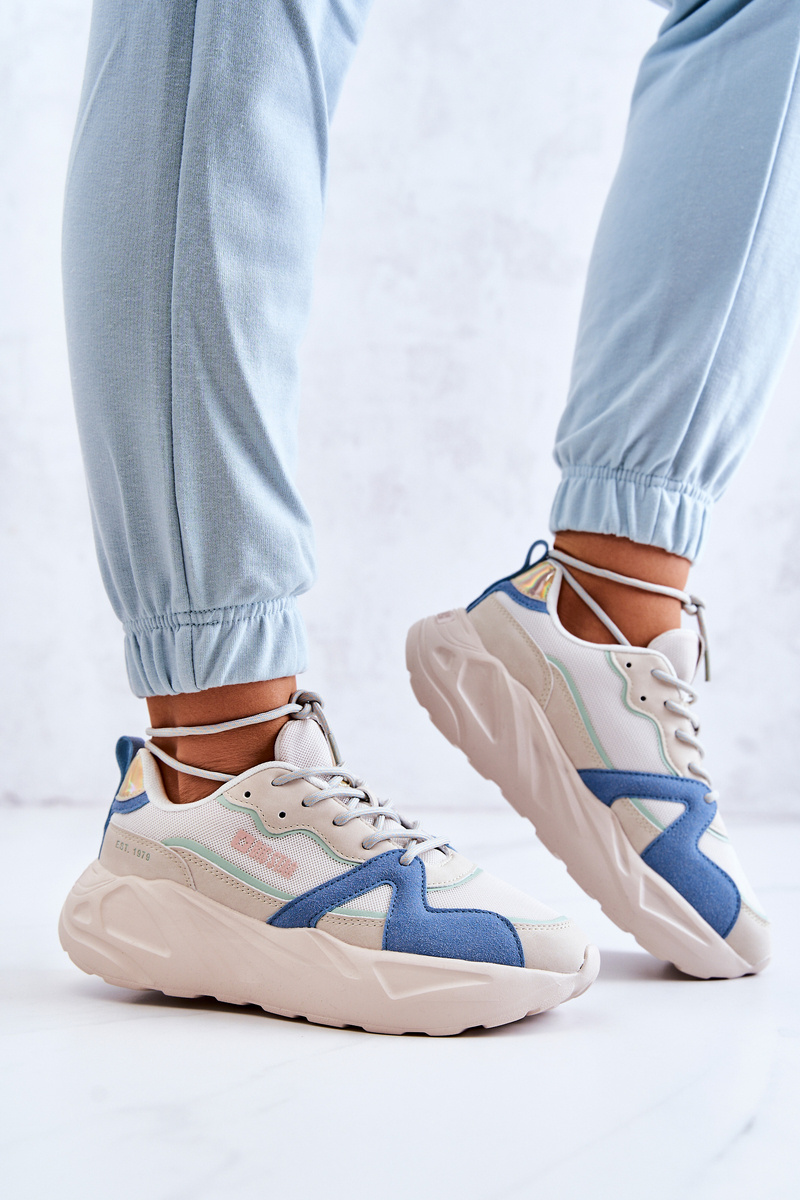Damskie Sneakersy Memory Foam Big Star JJ274600 Beżowo-Niebieskie