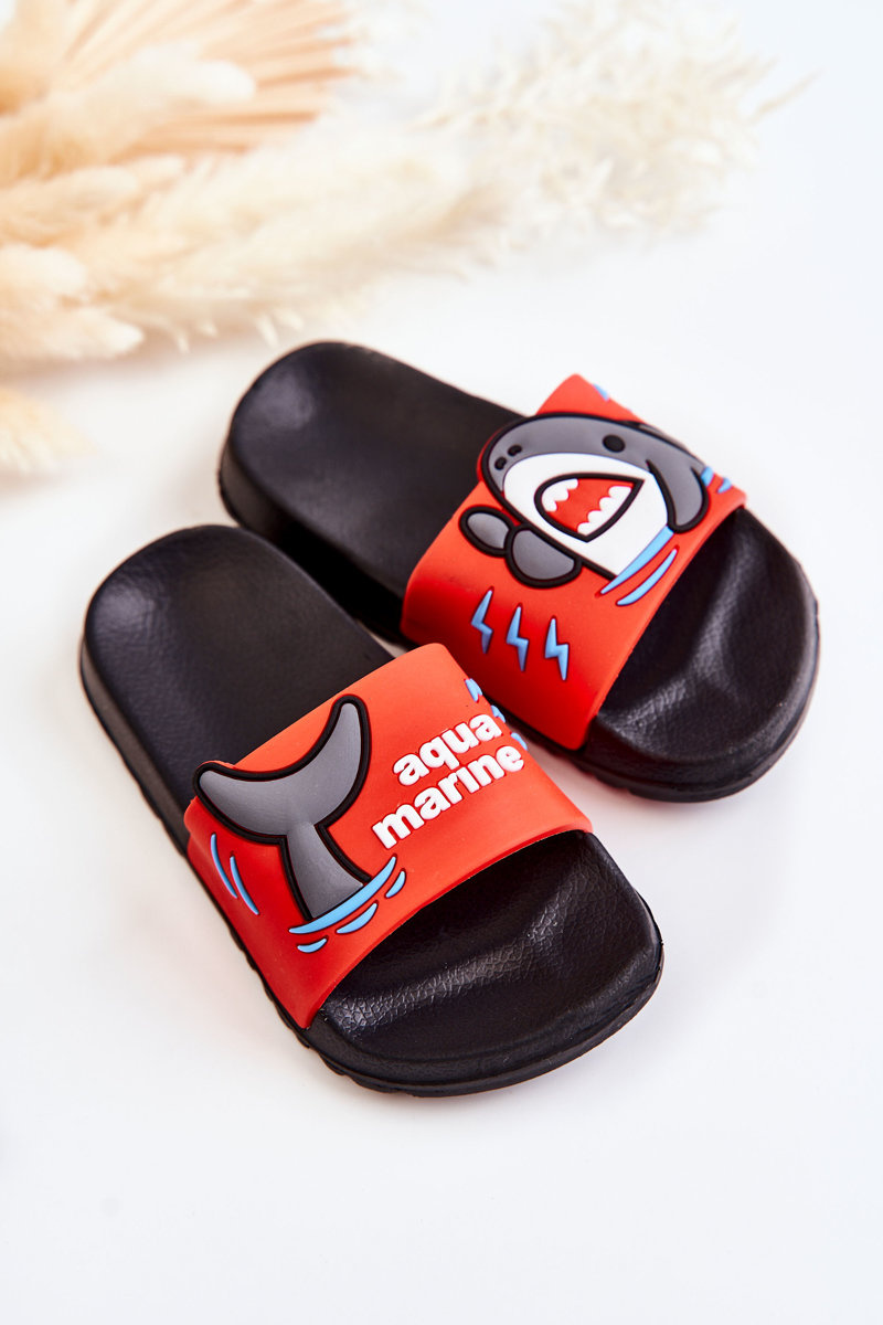 Lekkie Dziecięce Klapki Czerwono-Czarne Sharky