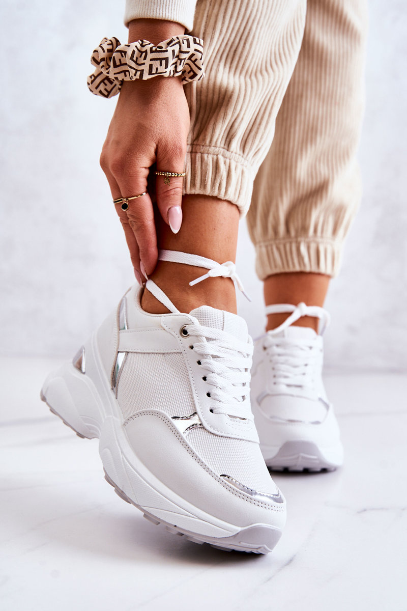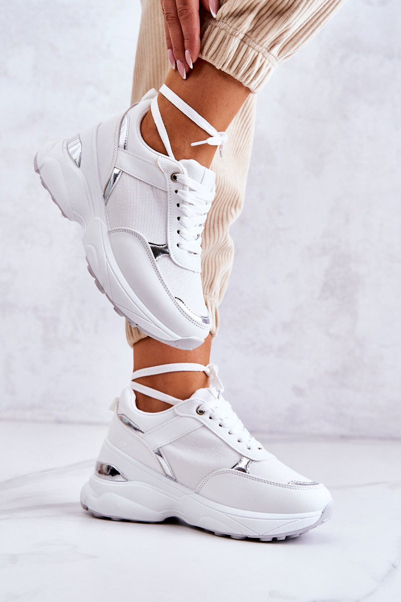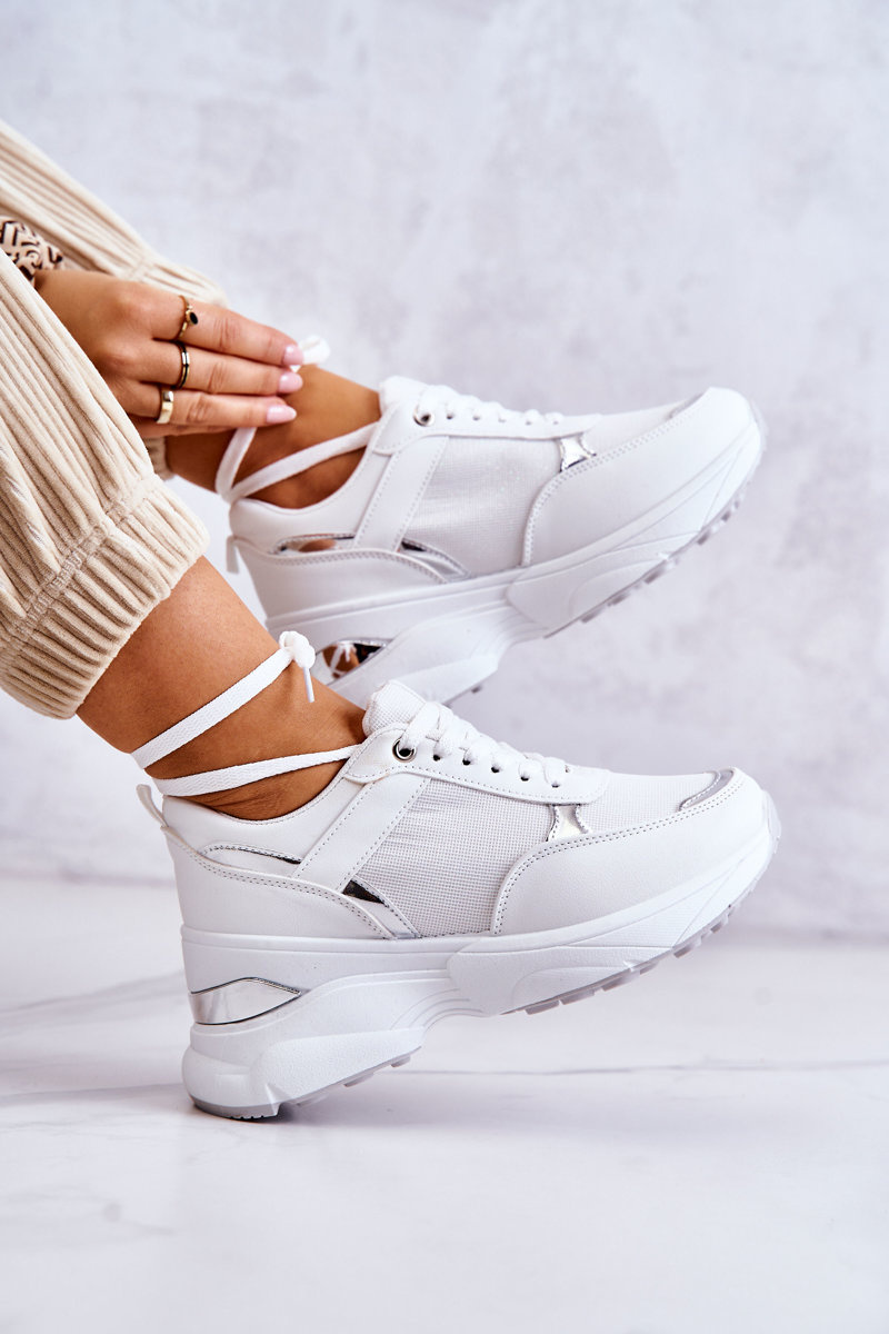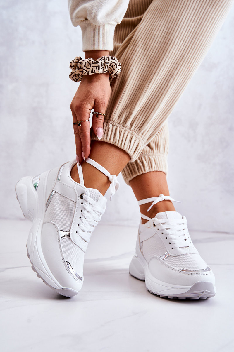 Damskie Błyszczące Buty Sportowe Na Koturnie Białe Activity