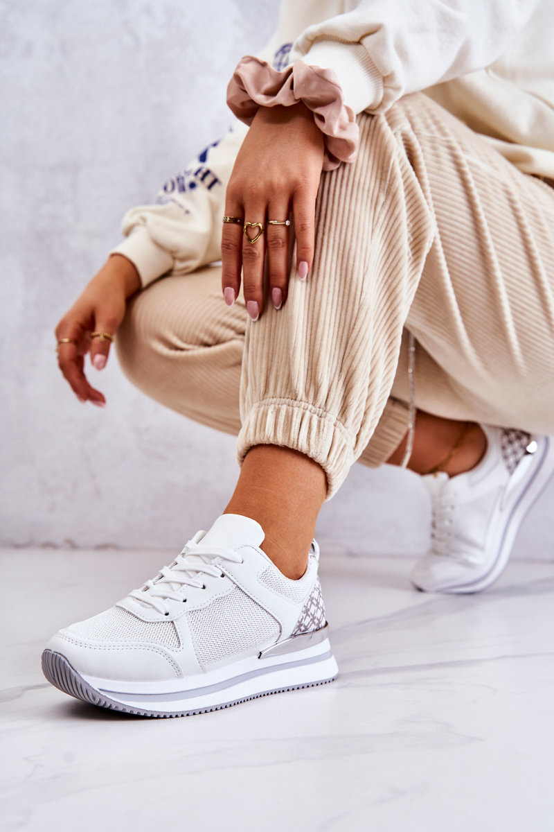 Damskie Klasyczne Buty Sportowe Na Koturnie Białe Advanced