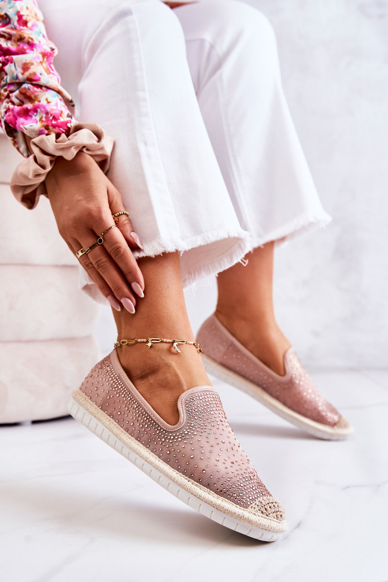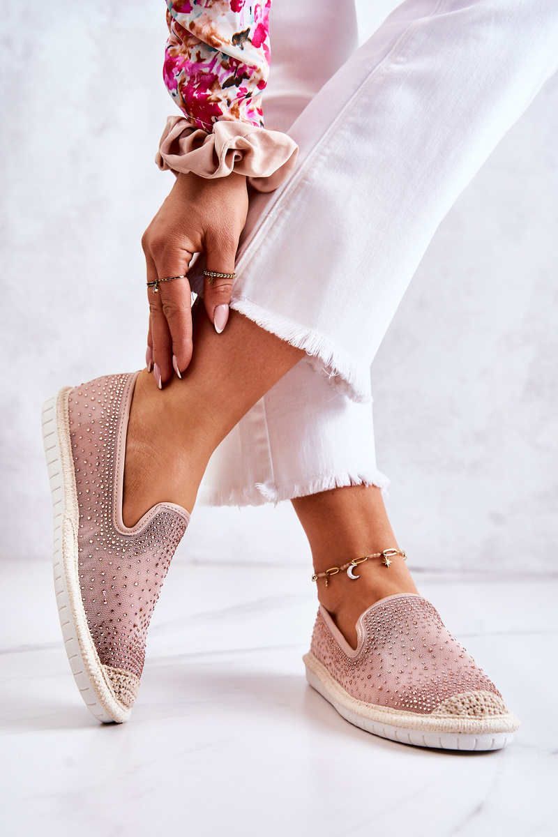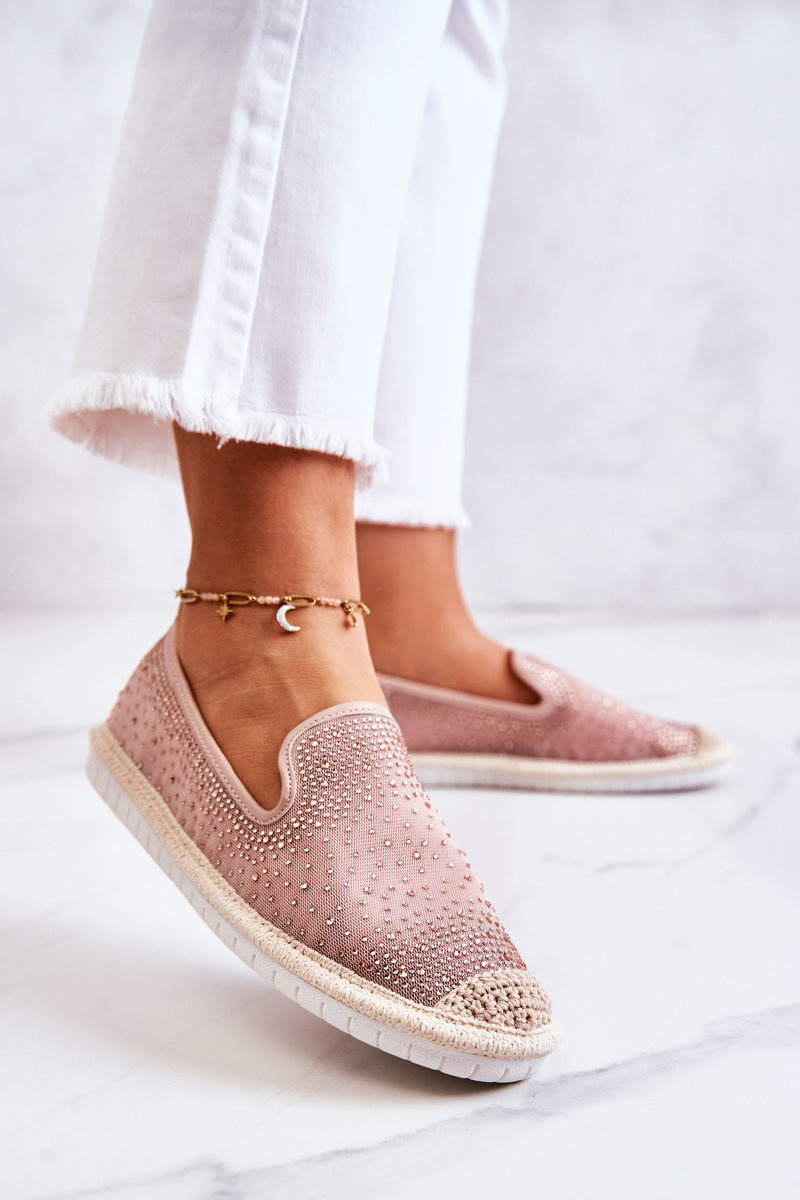 Damskie Materiałowe Espadryle Z Cyrkoniami Różowe Deimos