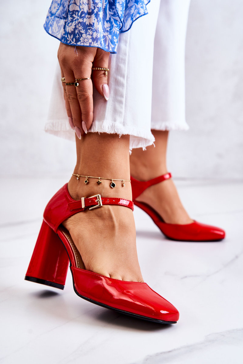 Modne Lakierowane Czółenka Na Słupku Czerwone Maoris