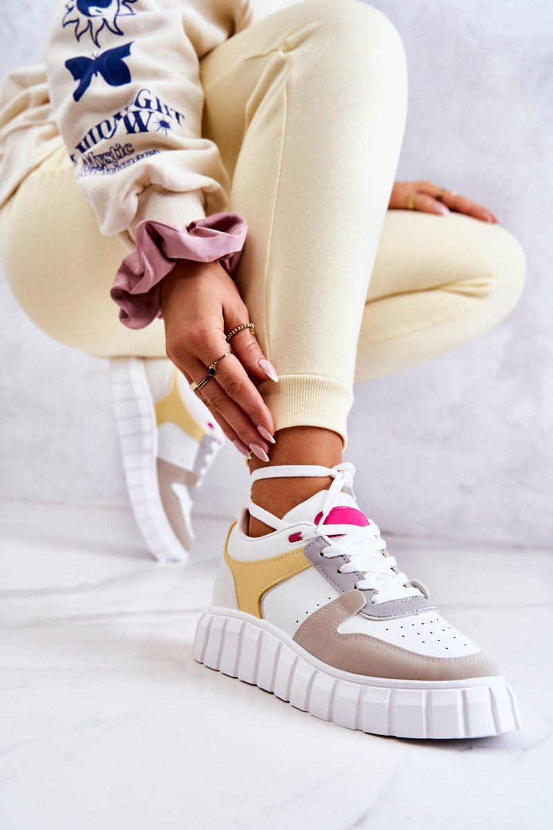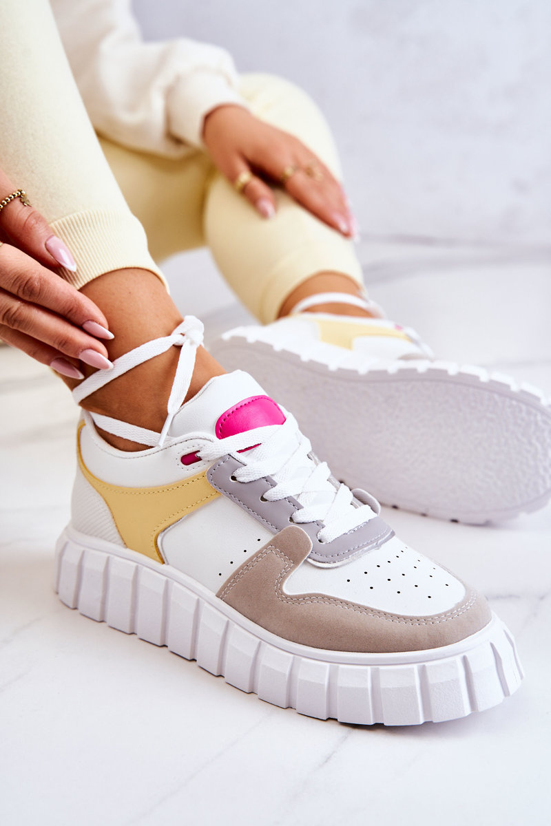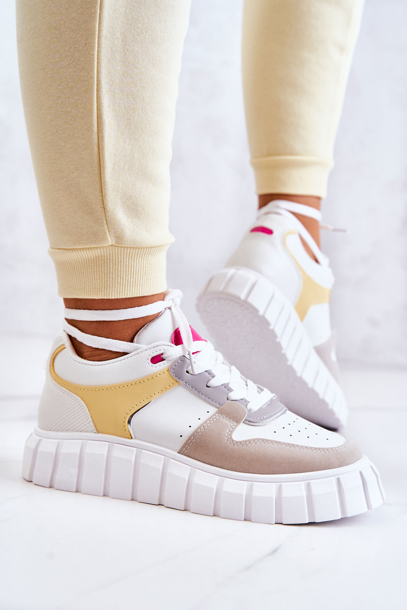 Damskie Skórzane Buty Sportowe Biało-Beżowe Florentine