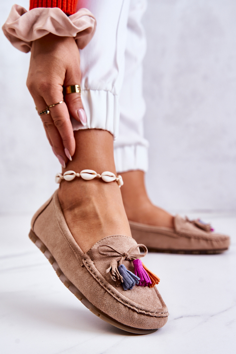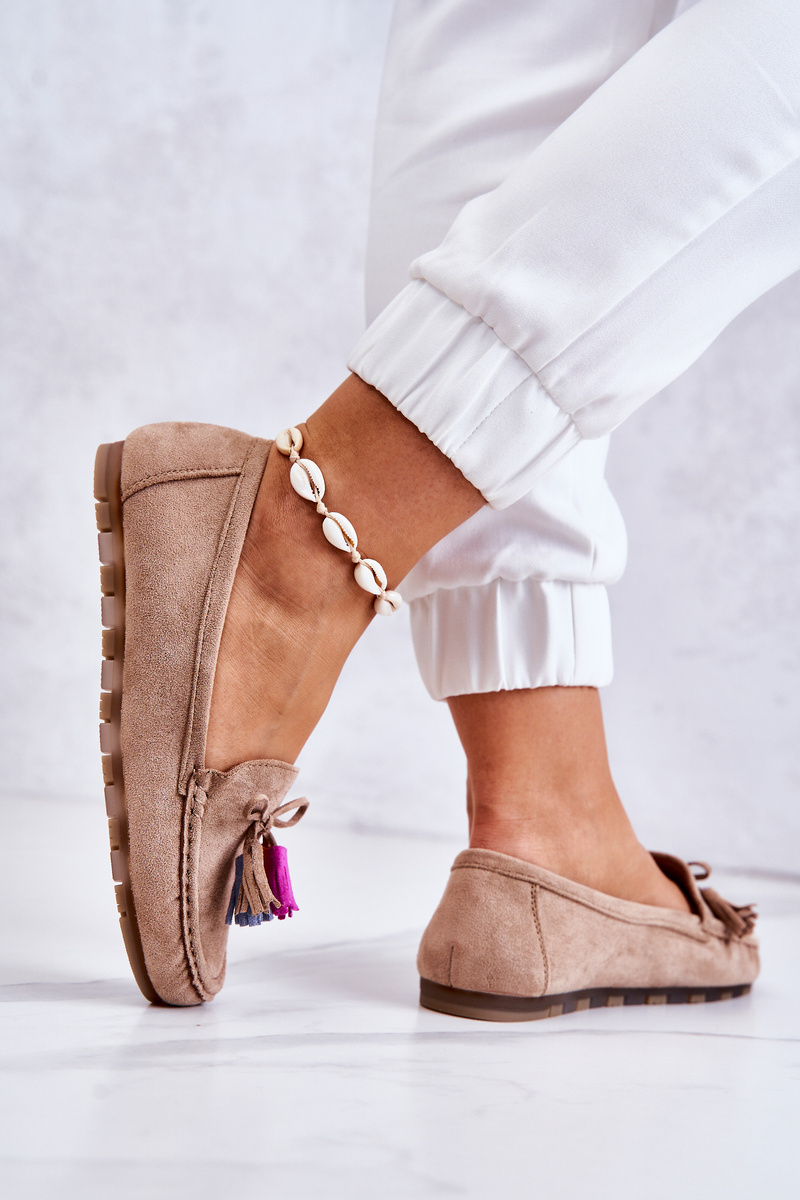 Damskie Zamszowe Mokasyny Ciemnobeżowe Wilessa