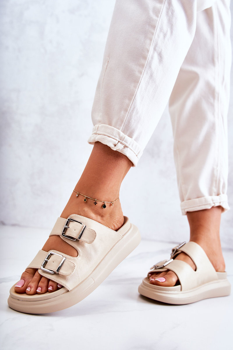 Damskie Skórzane Klapki Ze Sprzączką La.Fi Beżowe Nariss