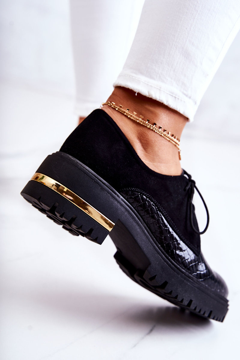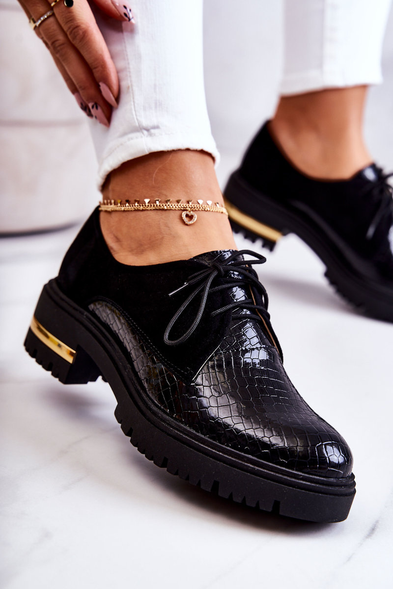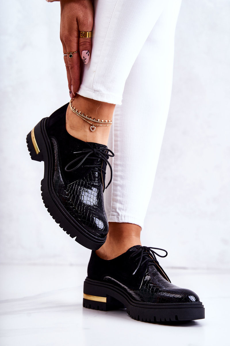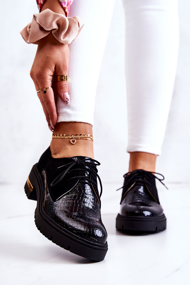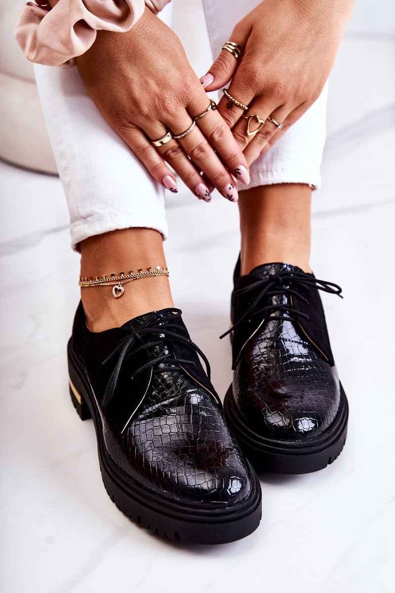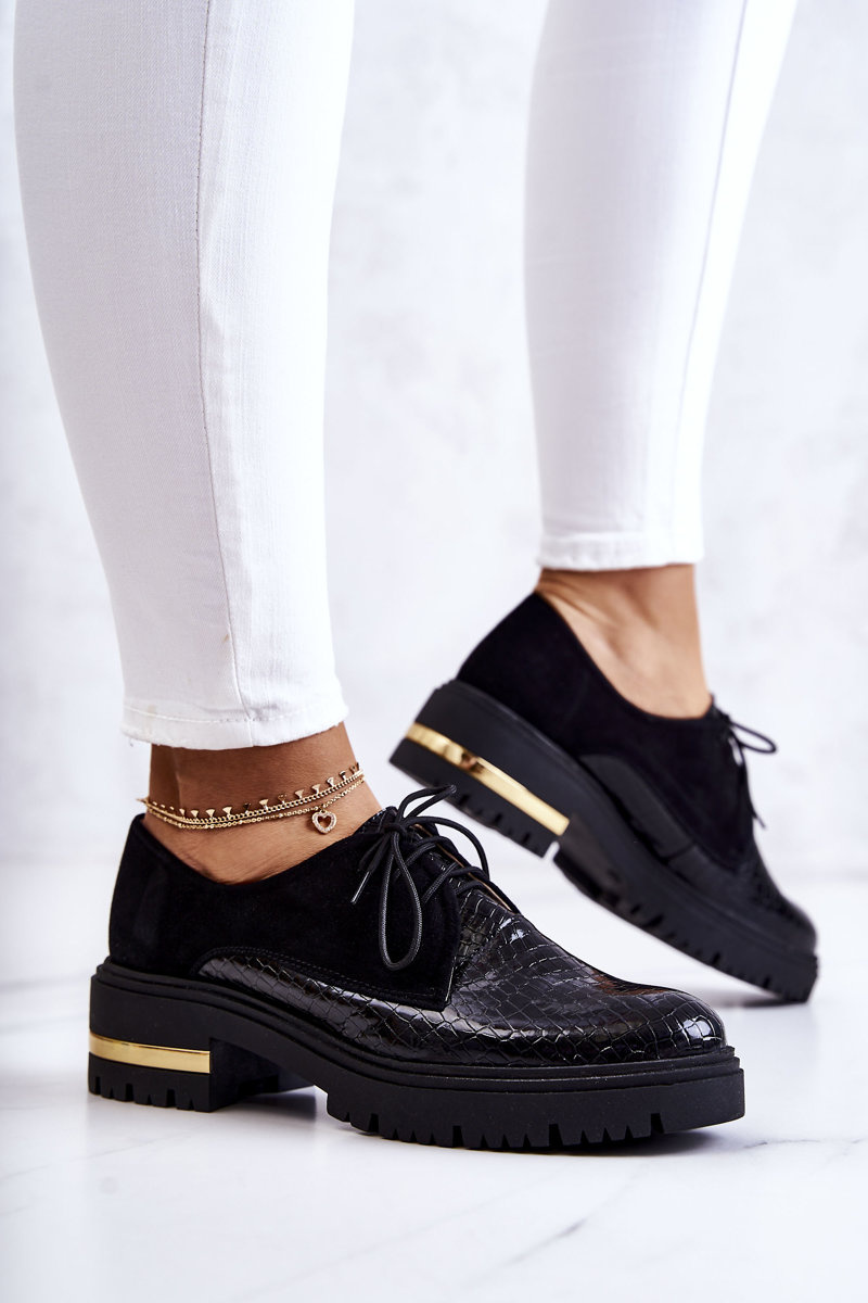 Damskie Skórzane Półbuty Wiązane Czarne Merevin