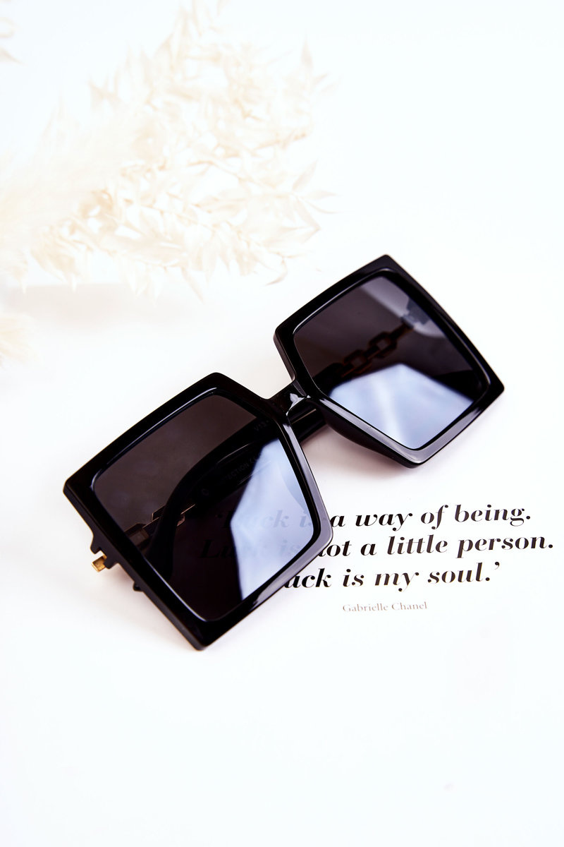 Duże Okulary Przeciwsłoneczne Kwadratowe V130043 Czarno-Złote
