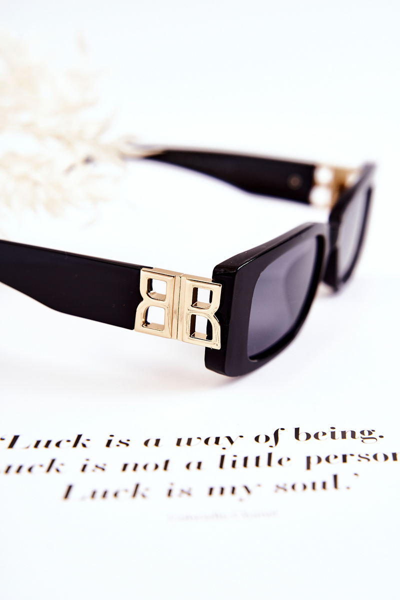 Modne Okulary Przeciwsłoneczne Prostokątne V120035 Czarne