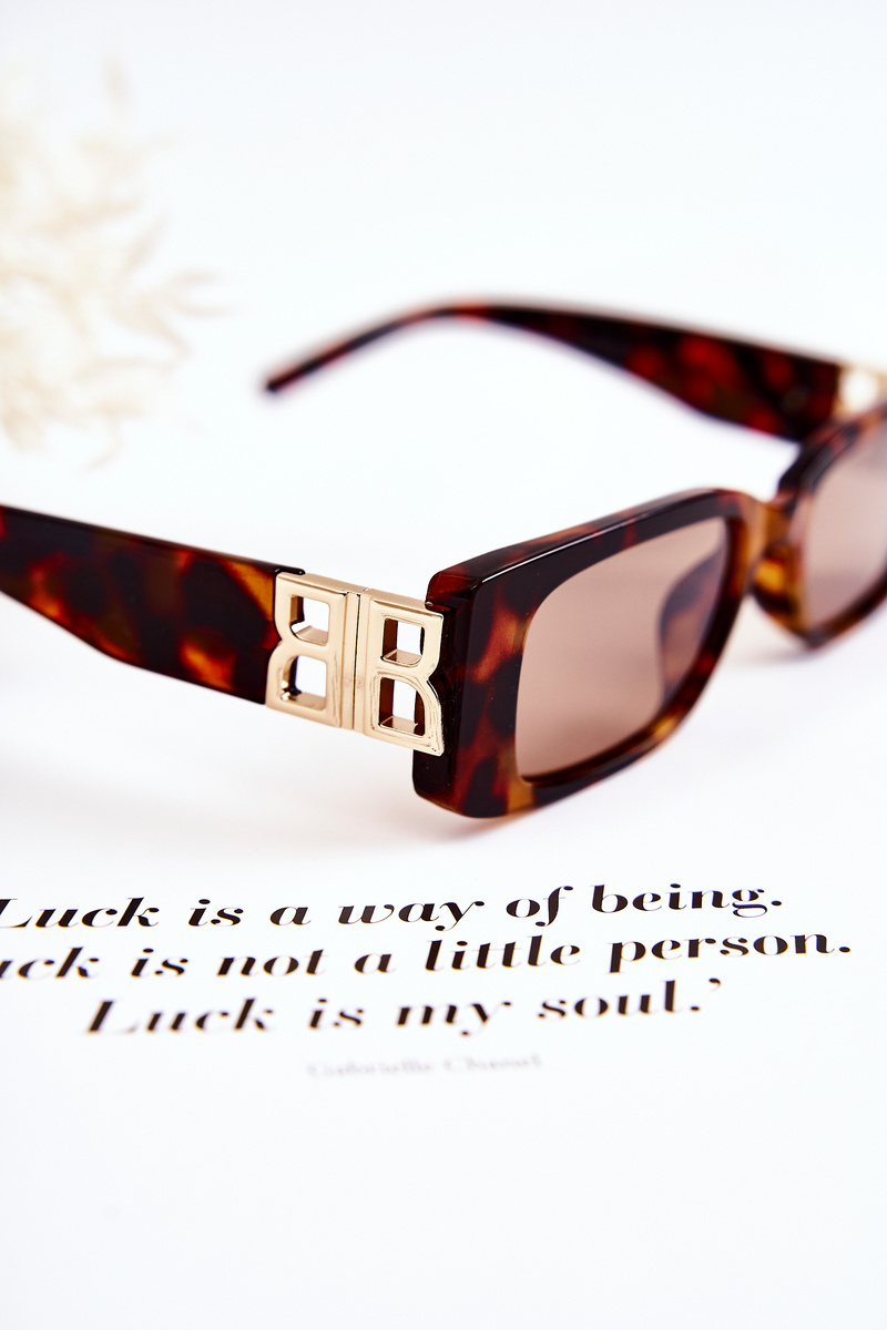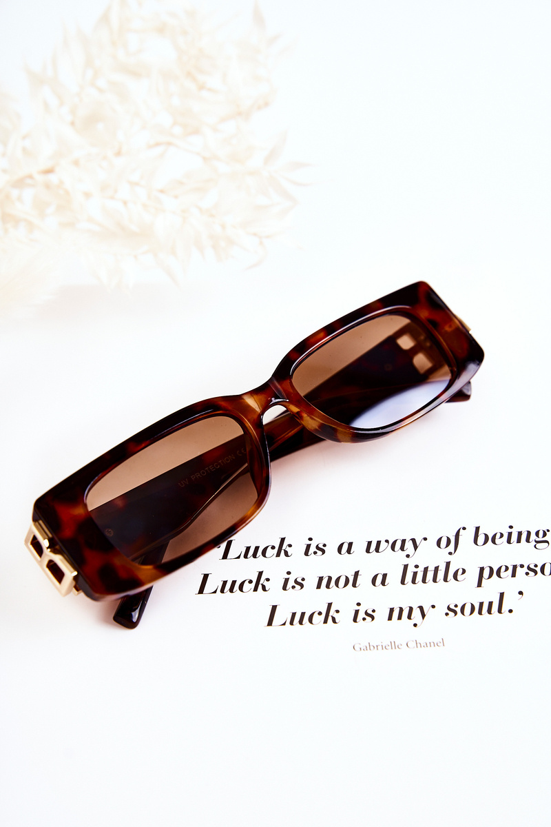 Modne Okulary Przeciwsłoneczne Prostokątne Marmurkowe V120035 Brązowe