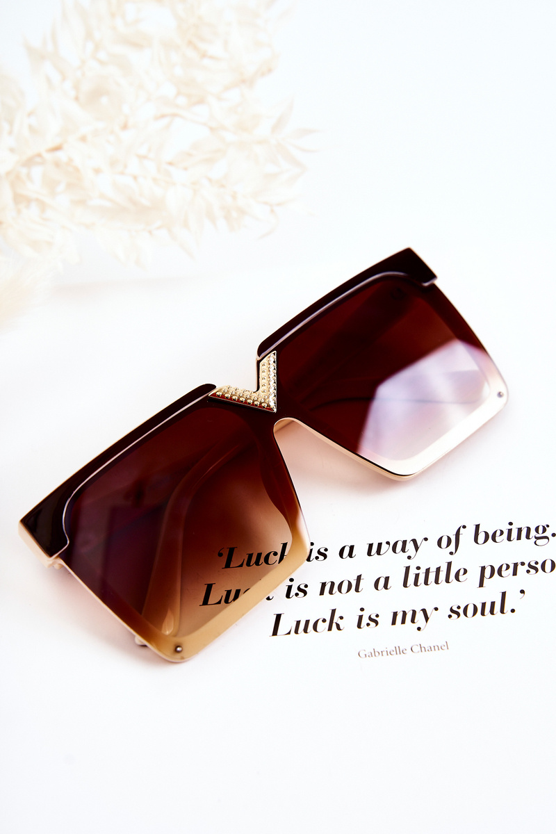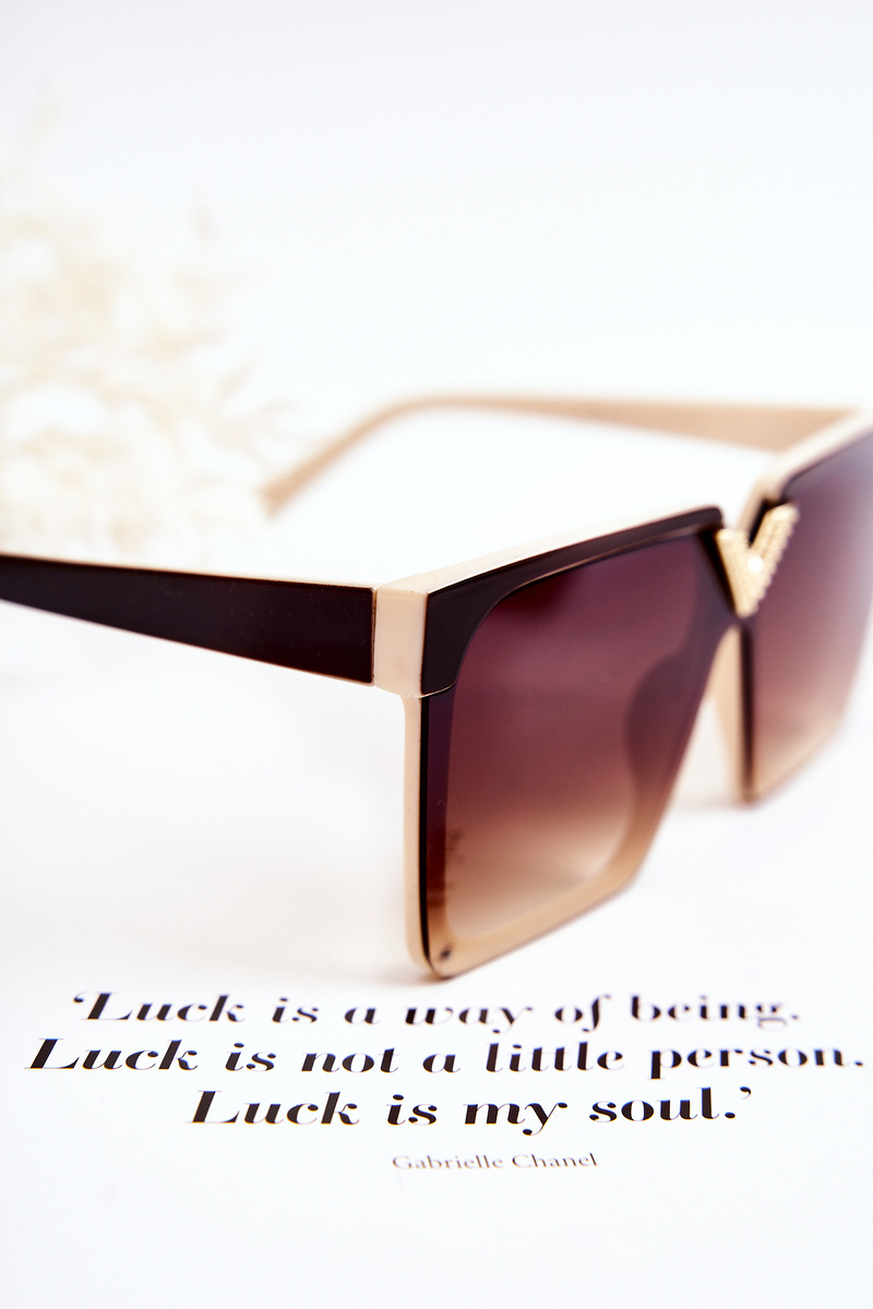 Kwadratowe Okulary Przeciwsłoneczne V130044 Brązowo-Beżowe