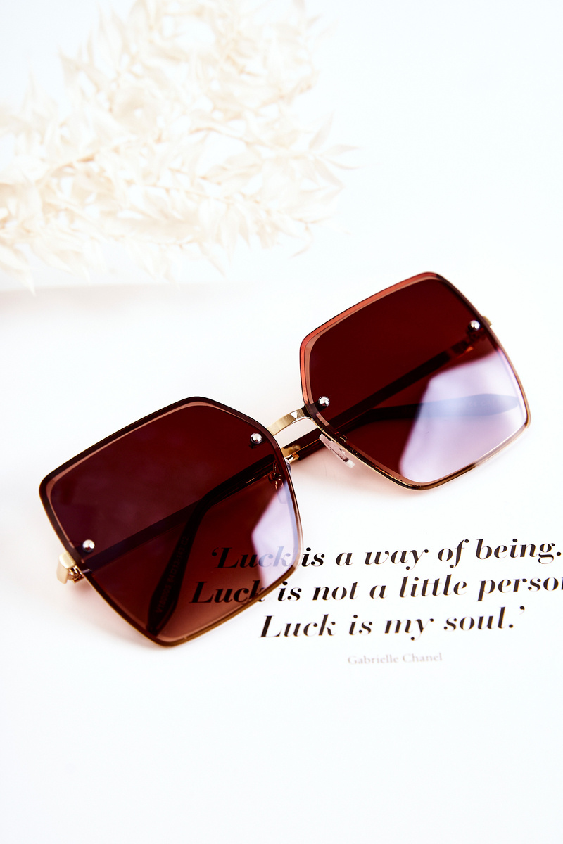 Duże Okulary Przeciwsłoneczne Kwadratowe V180005 Brązowo-Złote
