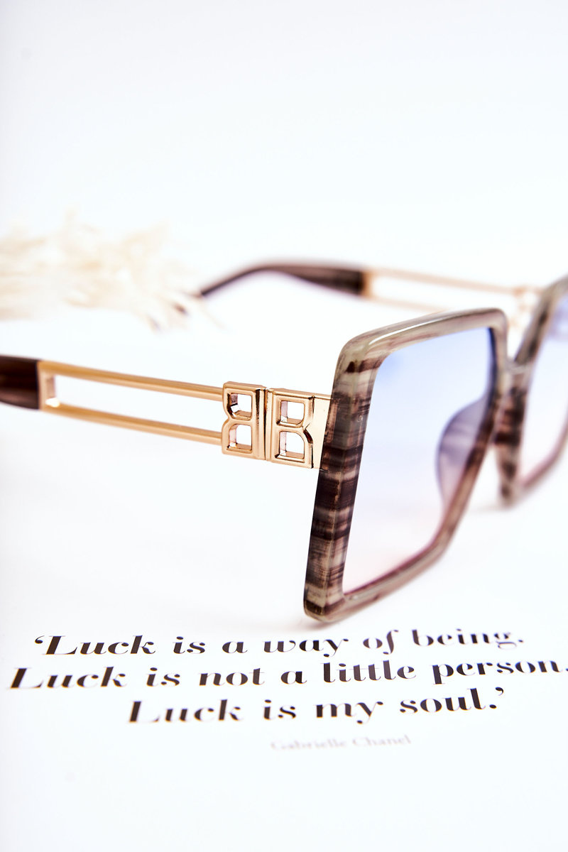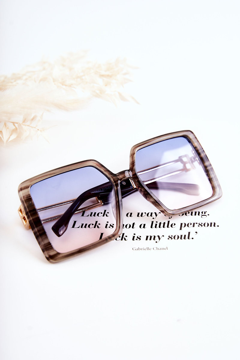 Stylowe okulary przeciwsłoneczne świetnie sprawdzą się w wielu sytuacjach! Nie tylko podczas letniego sezonu, ale także zimowego, kiedy promienie słoneczne odbijają się od śniegu. Model o dużym, kwadratowym kształcie. Wykonane z tworzywa sztucznego. Zauszniki są dodatkowo przyozdobione. Informacja od producenta: okulary absorbują szkodliwe promienie UV, kategoria 2.