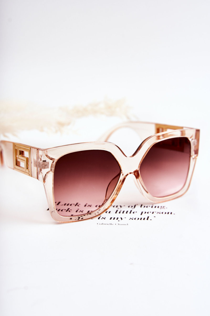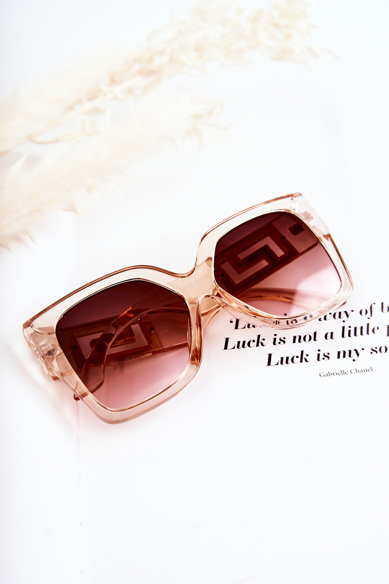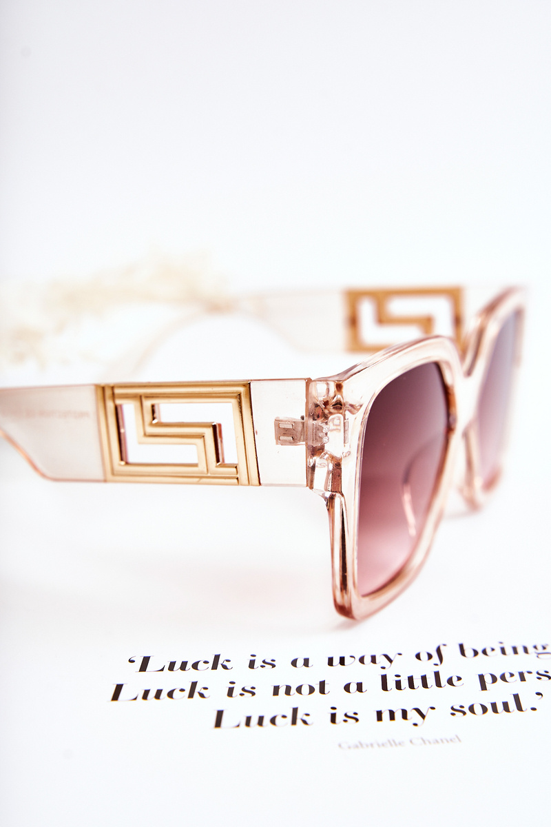 Damskie, stylowe okulary przeciwsłoneczne świetnie sprawdzą się w wielu sytuacjach! Nie tylko podczas letniego sezonu, ale także zimowego, kiedy promienie słoneczne odbijają się od śniegu. Wykonane z tworzywa sztucznego. Zauszniki grubsze z przodu, zwężane ku zakończeniu. Dodatkowo przyozdobione na zausznikach. Informacja od producenta: okulary chronią przed szkodliwym promieniowaniem UV, kategoria 2.