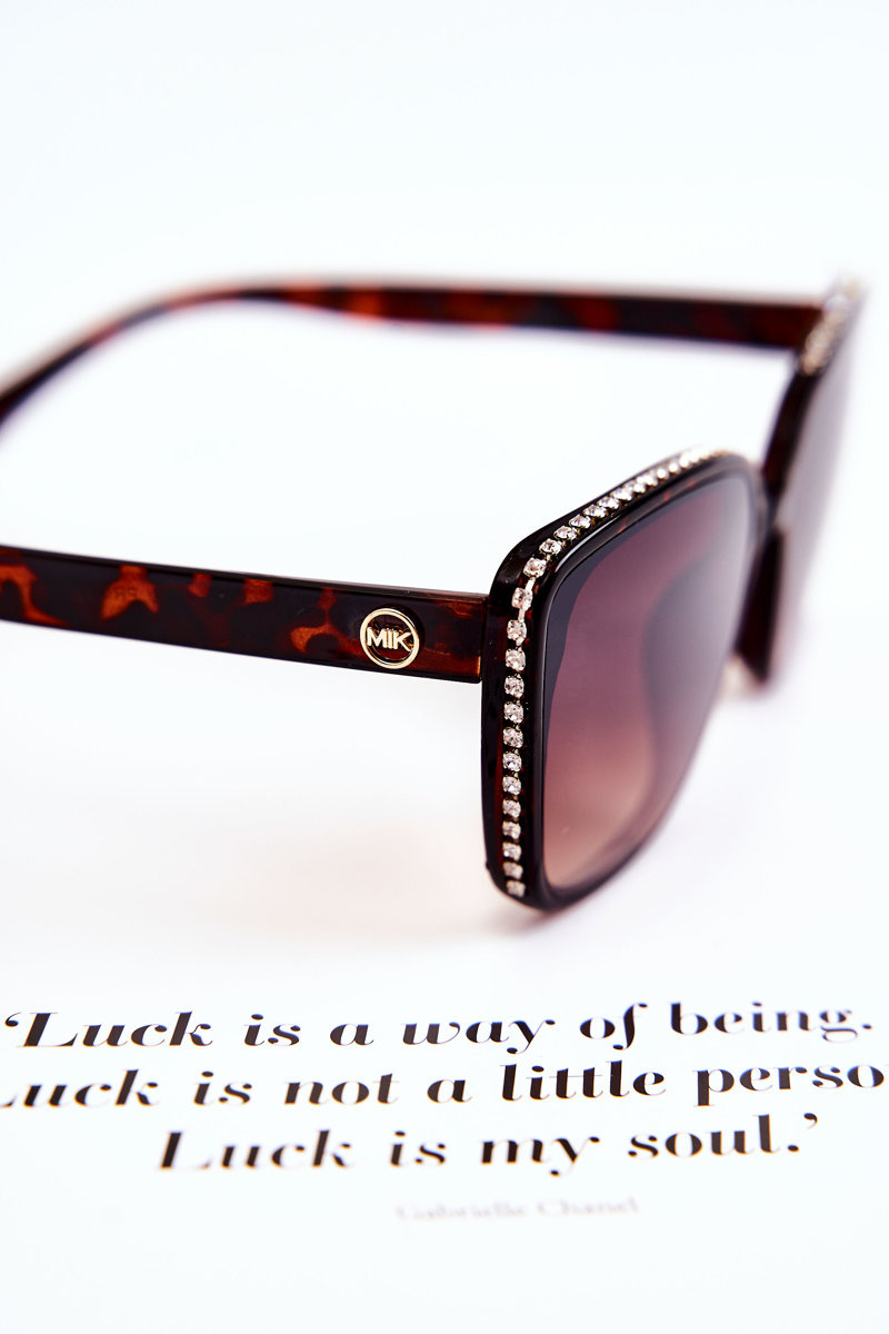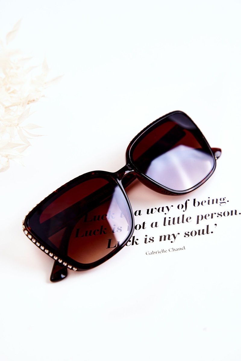 Modne okulary przeciwsłoneczne świetnie sprawdzą się w wielu sytuacjach! Nie tylko podczas letniego sezonu, ale także zimowego, kiedy promienie słoneczne odbijają się od śniegu. Model o kształcie kocich oczu. Wykonane z tworzywa sztucznego. Soczewki z delikatnymi oprawkami przyozdobione dżetami imitującymi cyrkonie. Zauszniki klasyczne, smukłe, z ozdobnym logo. Informacja od producenta: okulary chronią przed szkodliwym promieniowaniem UV, kategoria 3.