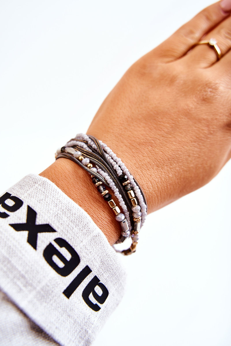 Damska Bransoletka Z Perełkami I Kryształkami Szara