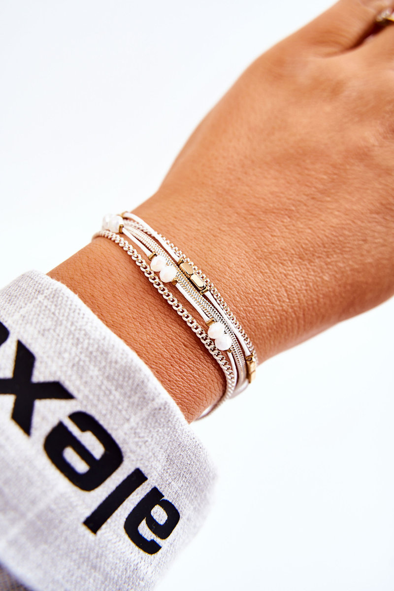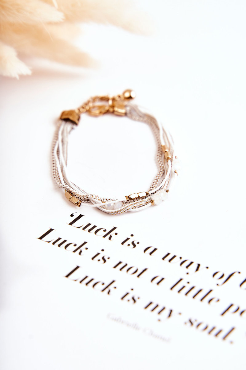 Piękna bransoletka składająca się z kilku łańcuszków. Została wykonana z metalu nieszlachetnego. Posiada możliwość regulacji długości oraz ozdoby w postaci imitacji kryształków. Bransoletka prezentuje się niezwykle wyjątkowo. Koniecznie sprawdź także pozostałą naszą ofertę dostępnych modeli biżuterii. Dodaj szyku stylizacji !