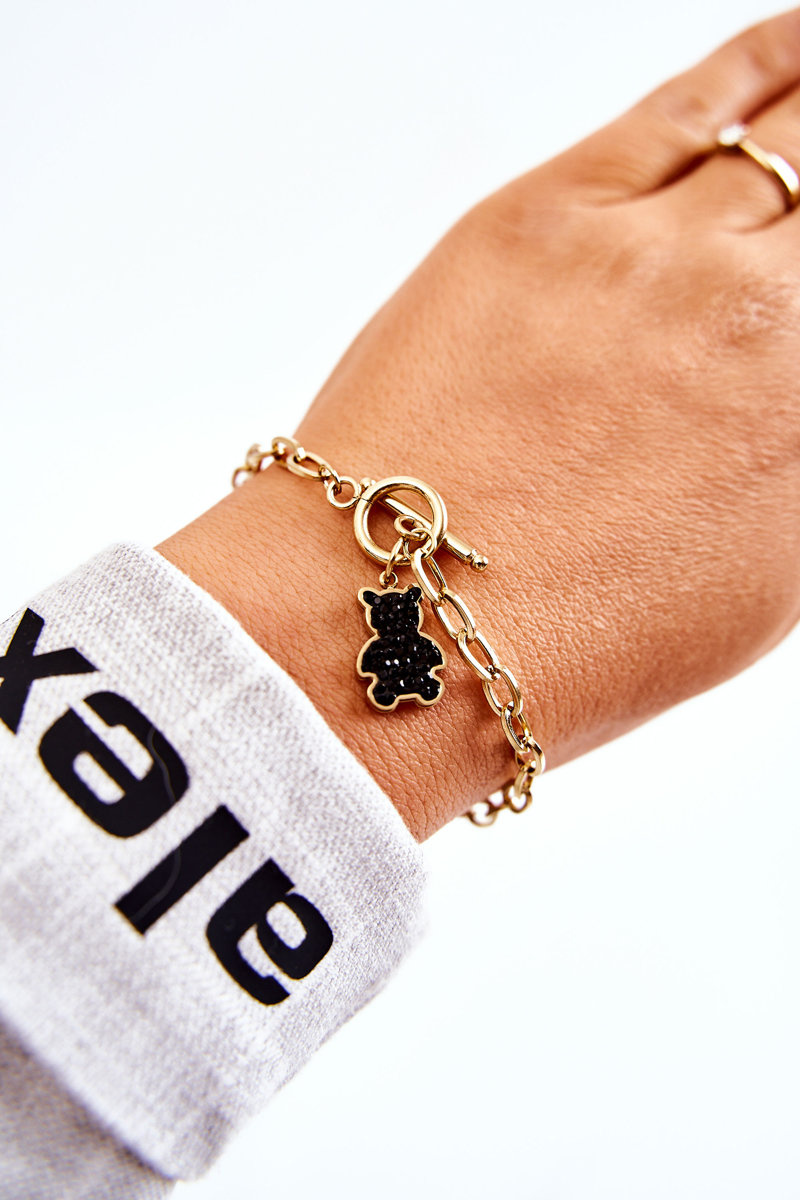 Damska Bransoletka Miś Z Cyrkoniami Złota