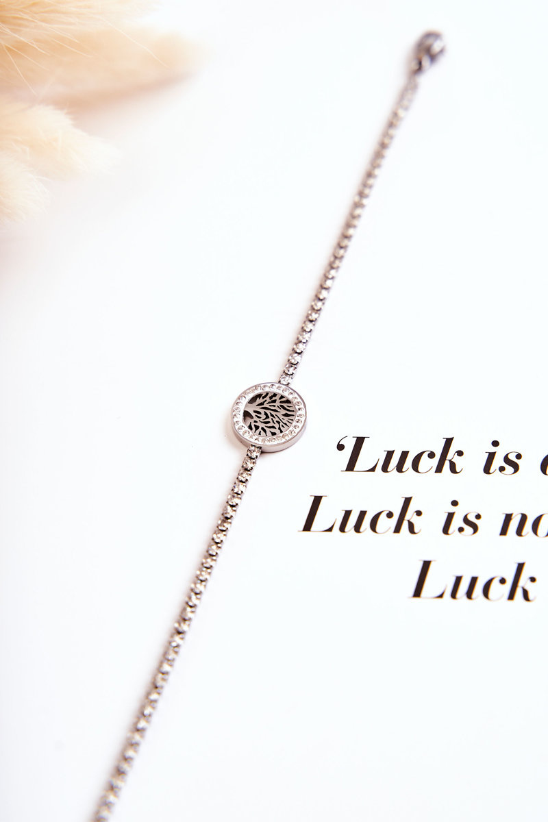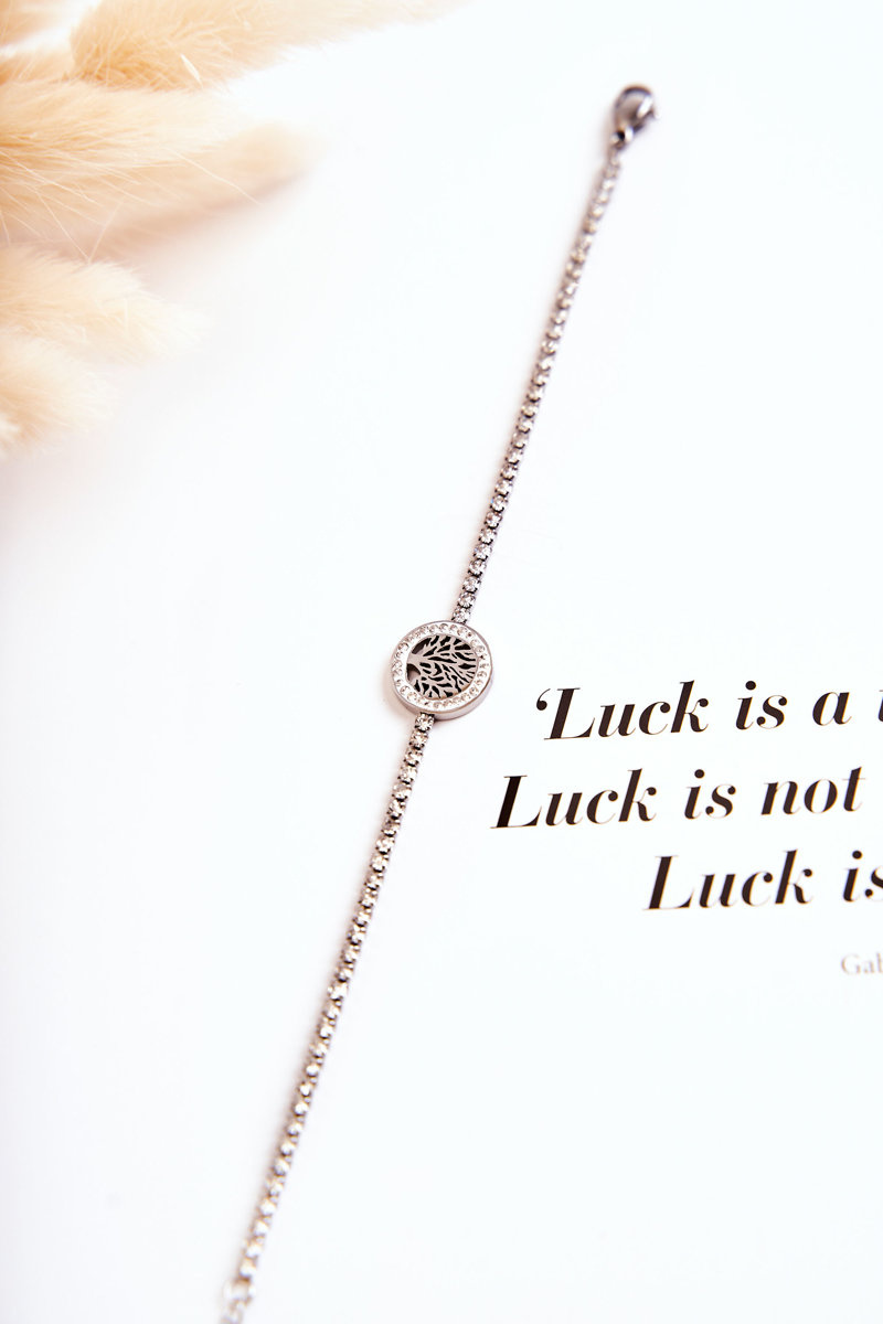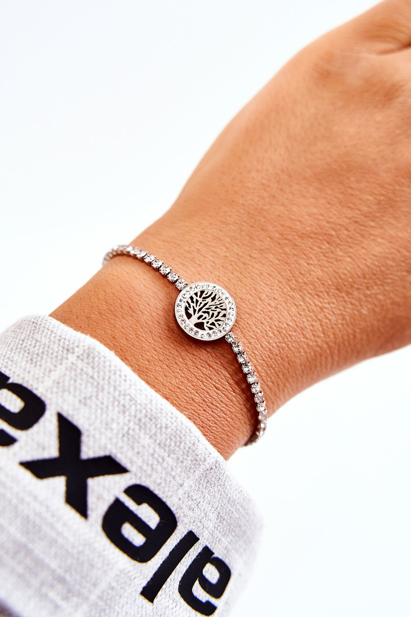 Cudna bransoletka damska wykonana ze stali nierdzewnej. Posiada możliwość regulacji długości. Ozdoby w postaci mieniących się imitacji cyrkonii oraz drzewa w kole. Prezentuje się niezwykle elegancko. Założysz ją jako dodatek do wielu stylizacji. Koniecznie sprawdź także pozostałą naszą ofertę dostępnych modeli biżuterii. Świetny model, musisz go mieć!