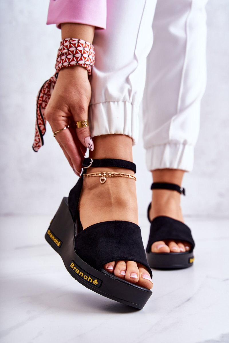 Damskie Zamszowe Sandały Na Koturnie Czarne Cortena