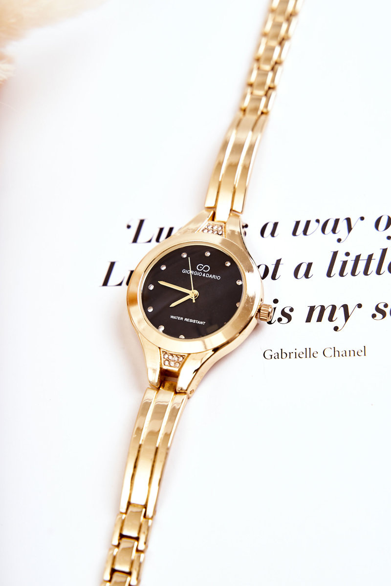 Giorgio & Dario Złoty Damski Zegarek Na Bransolecie Z Czarną Tarczą Pisento