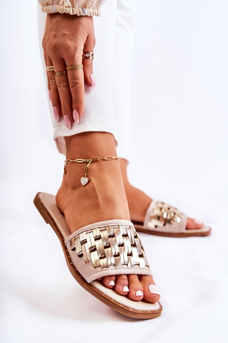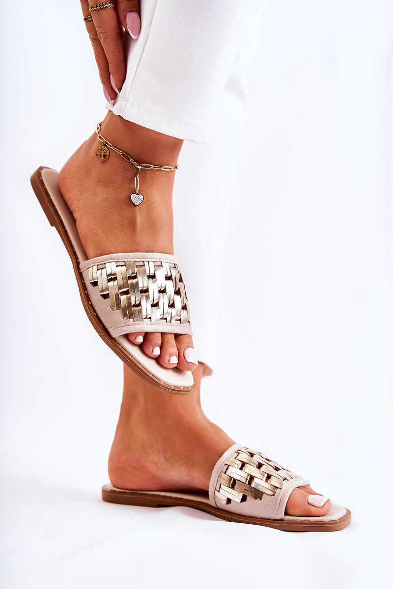 Damskie Skórzane Klapki Na Płaskim Obcasie Beżowe Hollis