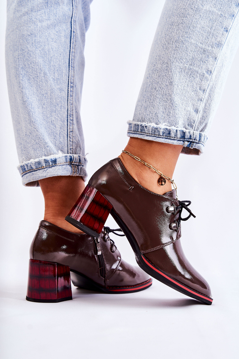 Półbuty Na Suwak Brązowo-Czerwone Laurosa