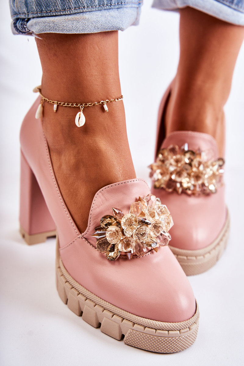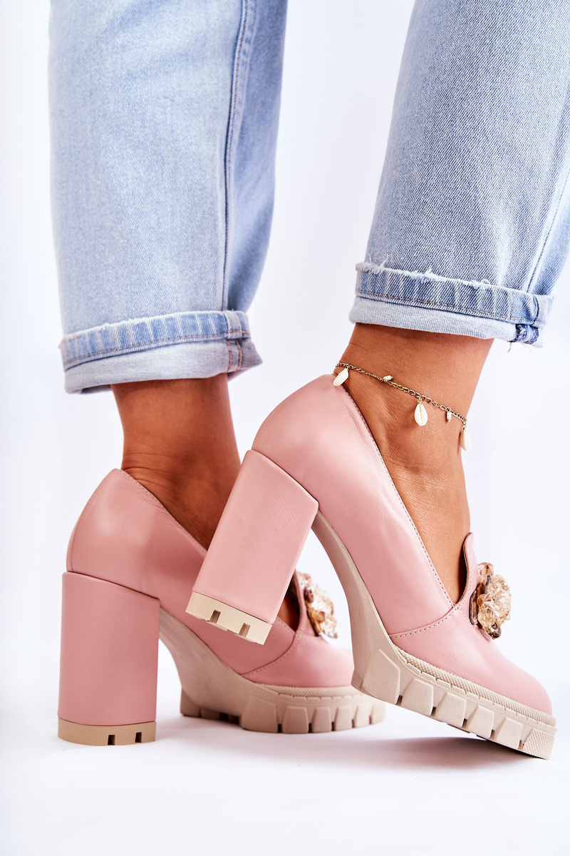 Eleganckie Czółenka Z Ozdobą Gładkie Różowo-Beżowe Caterine