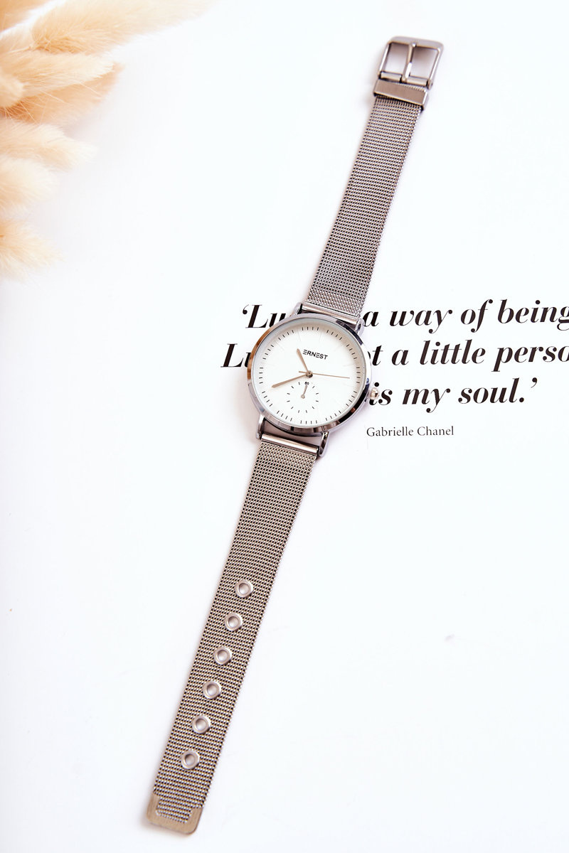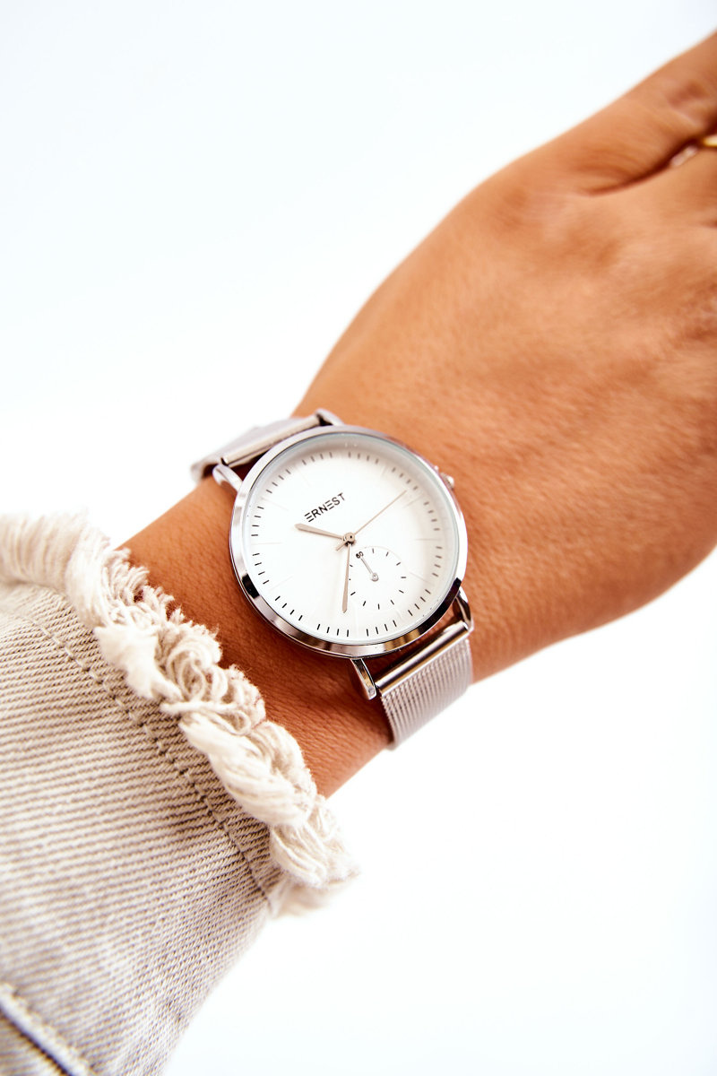 Piękny zegarek na bransolecie. Zapinany na sprzączkę z regulowanym paskiem. Posiada dużą, widoczną tarczę. Koniecznie powinnaś go mieć! Oferta obejmuje tylko i wyłącznie zegarek, bez dodatków widocznych na zdjęciu.