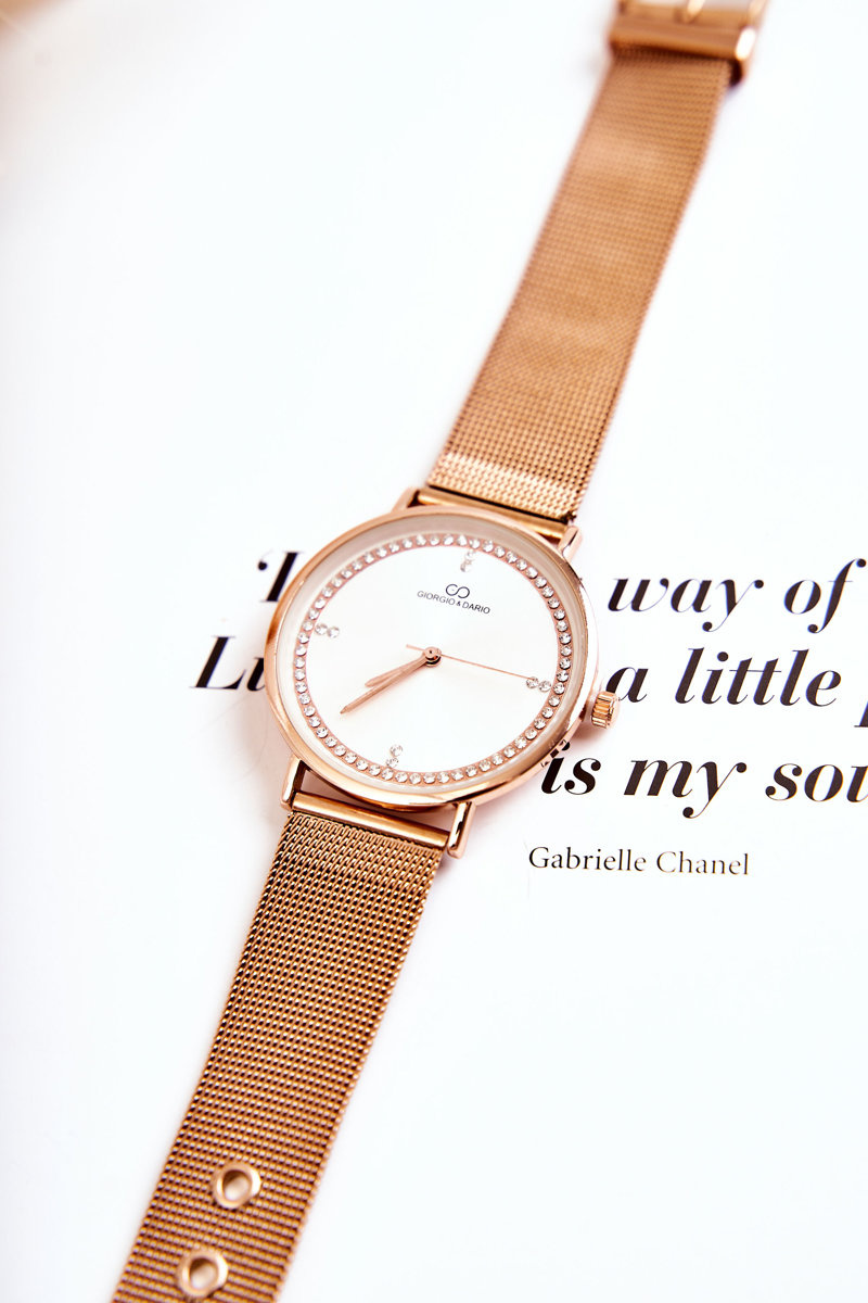 Damski Analogowy Zegarek Giorgio & Dario Z Cyrkoniami Różowe Złoto
