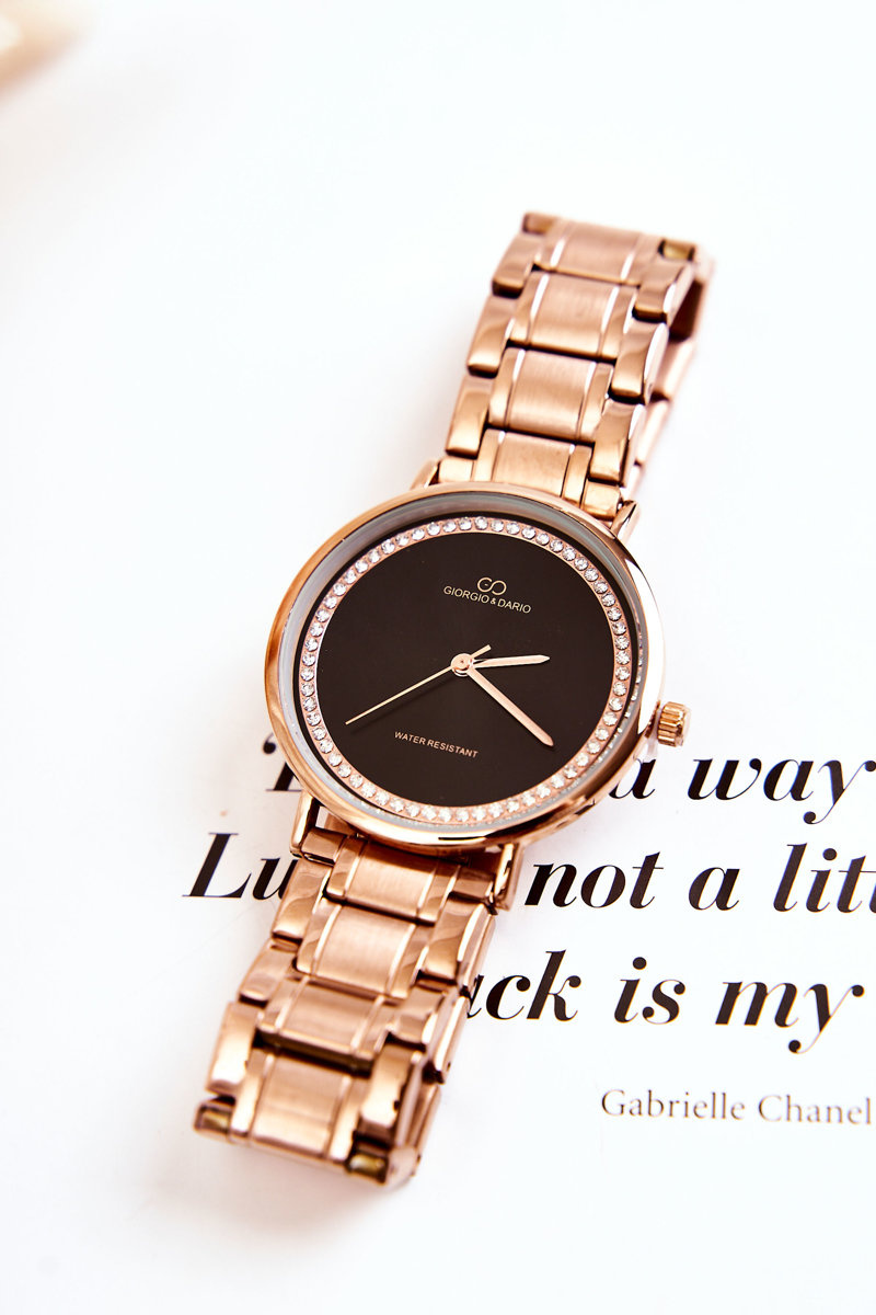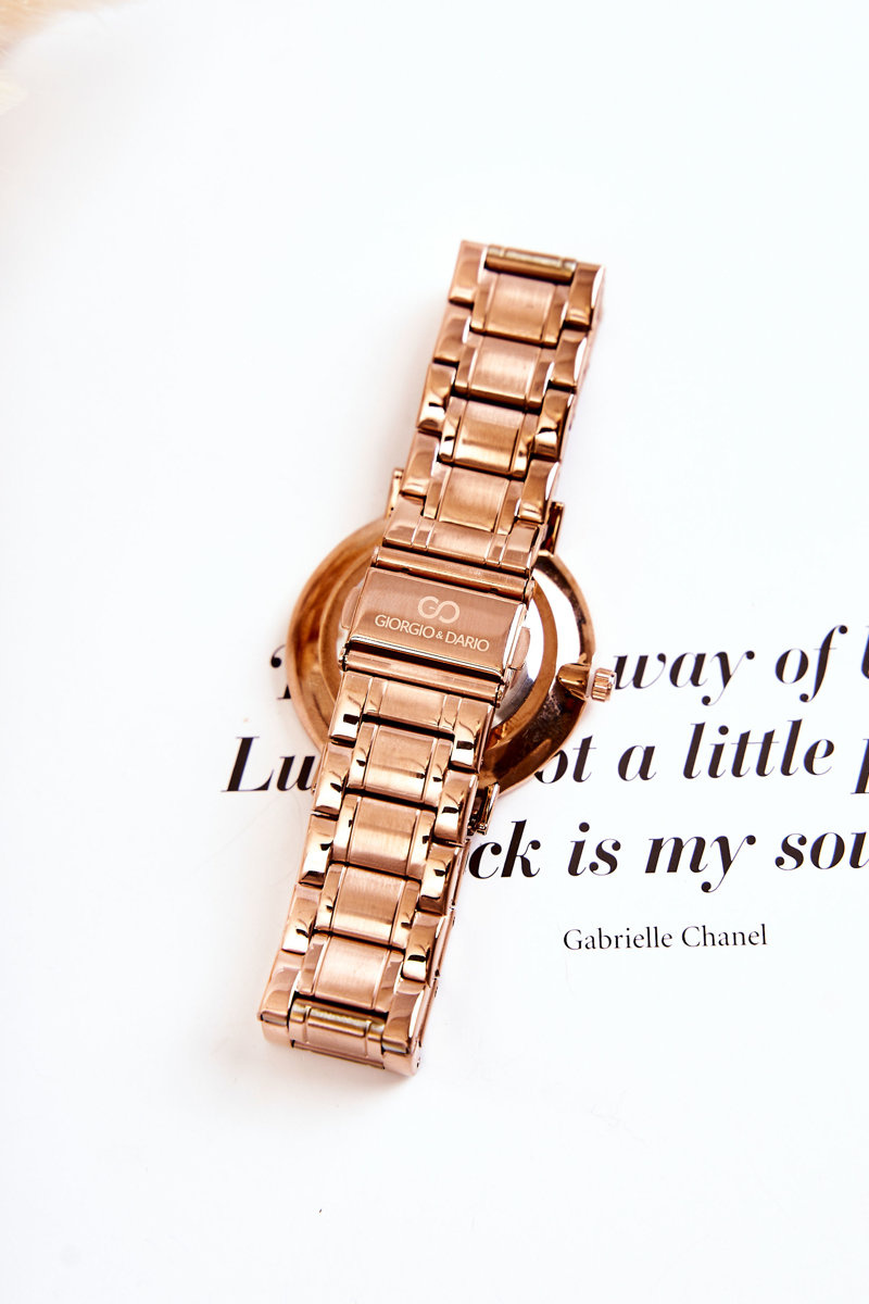 Damski Stalowy Zegarek Giorgio & Dario Z Cyrkoniami Różowe Złoto