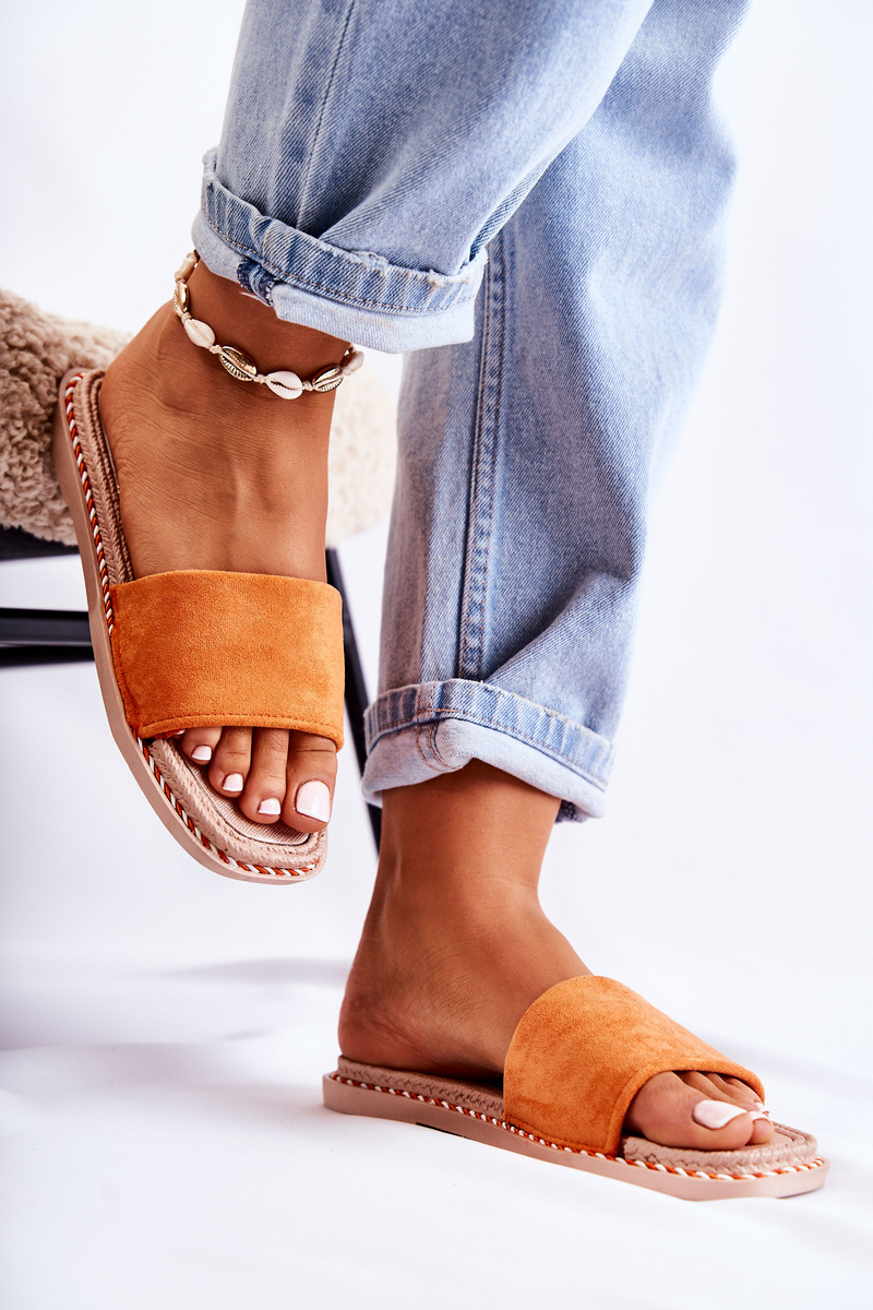Zamszowe Damskie Klapki Pomarańczowe Sunset