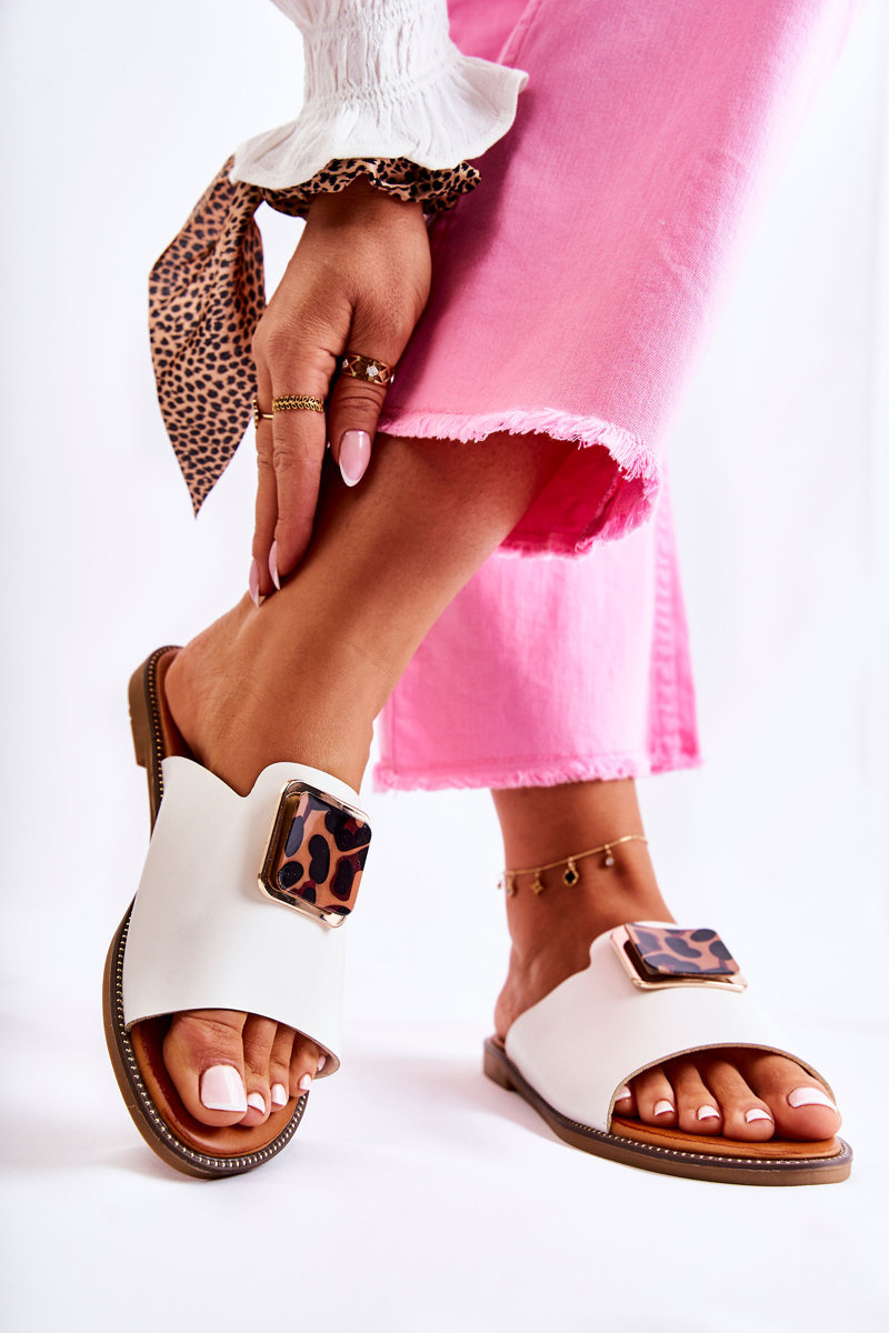 Damskie Klapki Z Ozdobnym Elementem Białe Leonia