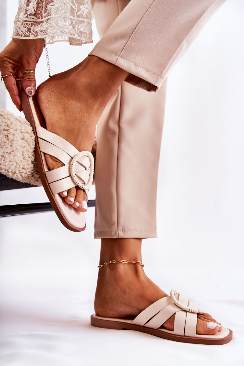 Modne klapki na lato dla kobiet ceniących sobie elegancję oraz wygodę! Klapki z odkrytymi palcami z eko skóry idealne na co dzień. Model wsuwany, z otwartym, kwadratowym noskiem. Stopę podtrzymują szerokie, krzyżujące się paski tworzące ciekawą minikonstrukcję. Miękka wkładka wykonana z eko skóry zapewni komfort podczas użytkowania. Koniecznie powinnaś mieć ten model w swojej garderobie! Przy wyborze rozmiaru prosimy sugerować się tabelą rozmiarów.