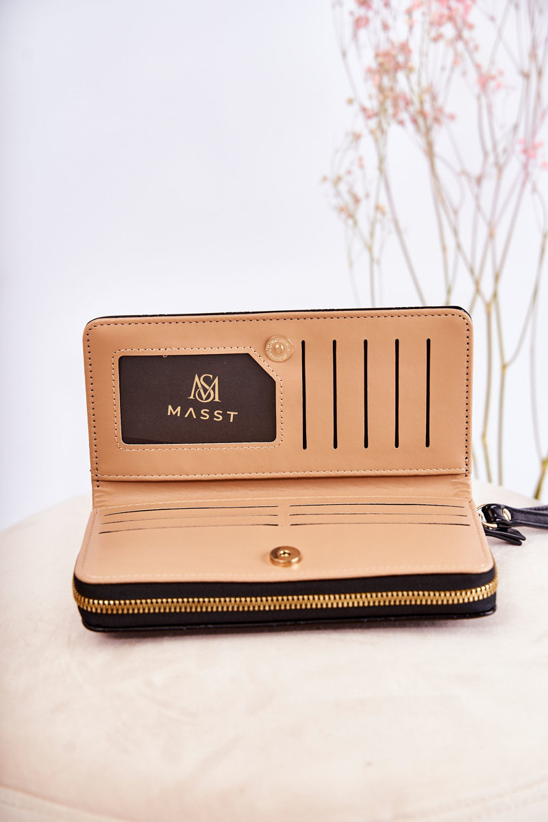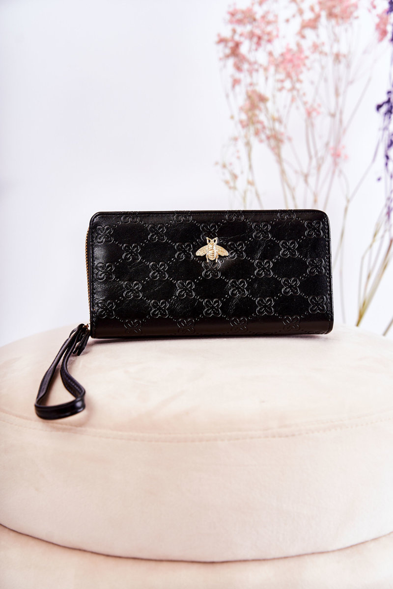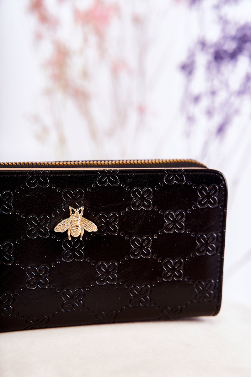 Damski Duży Portfel Z Ozdobą Czarny Fabio