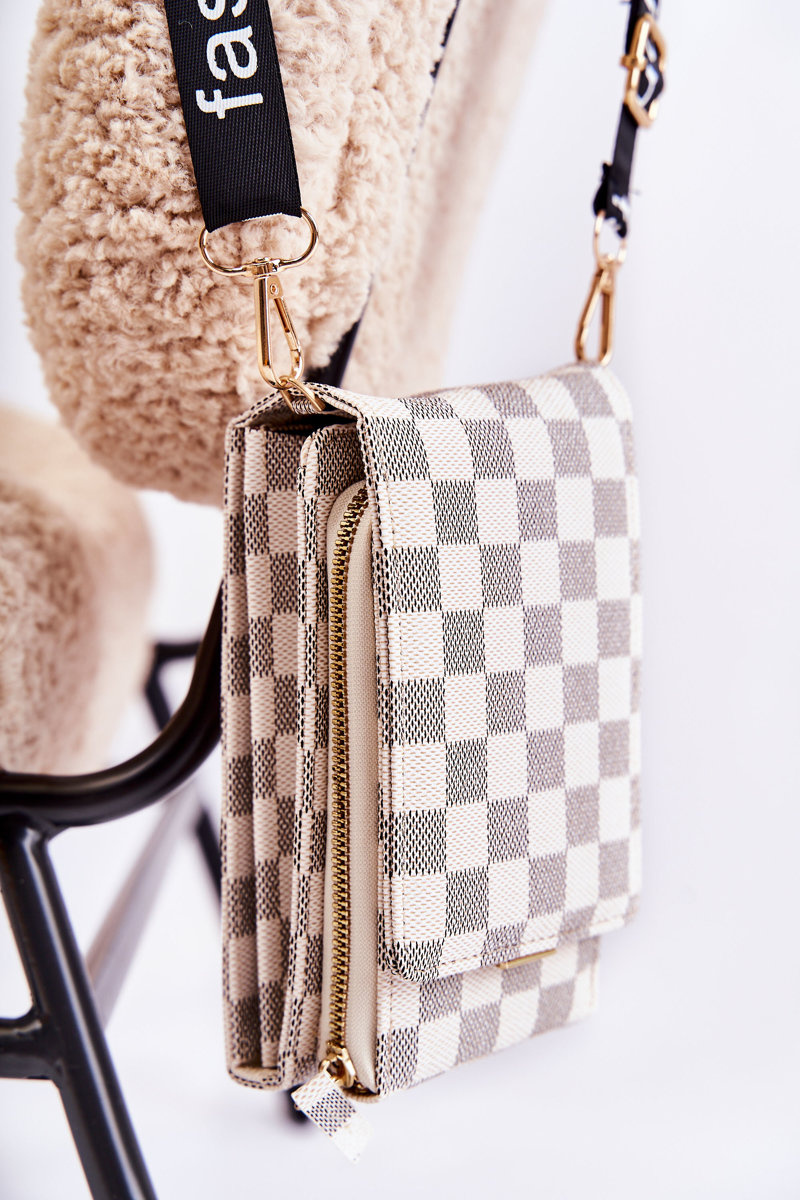 Portfel 2w1 wykonany z wysokiej jakości eko skóry w modną kratę. Torebka posiada jedną komorę zamykaną za pomocą klapy na magnes. W środku znajdują się dwie otwarte kieszenie, a także jedna zamykana na suwak. Dodatkowo do torebki jest dołączony regulowany, odpinany pasek. Torebkę możesz używać także jako portfela, gdyż pomieści najważniejsze rzeczy m.in.: dowód osobisty, dowód rejestracyjny czy nawet niewielkich rozmiarów smartfon. Koniecznie powinnaś mieć ten modny dodatek w swojej garderobie!