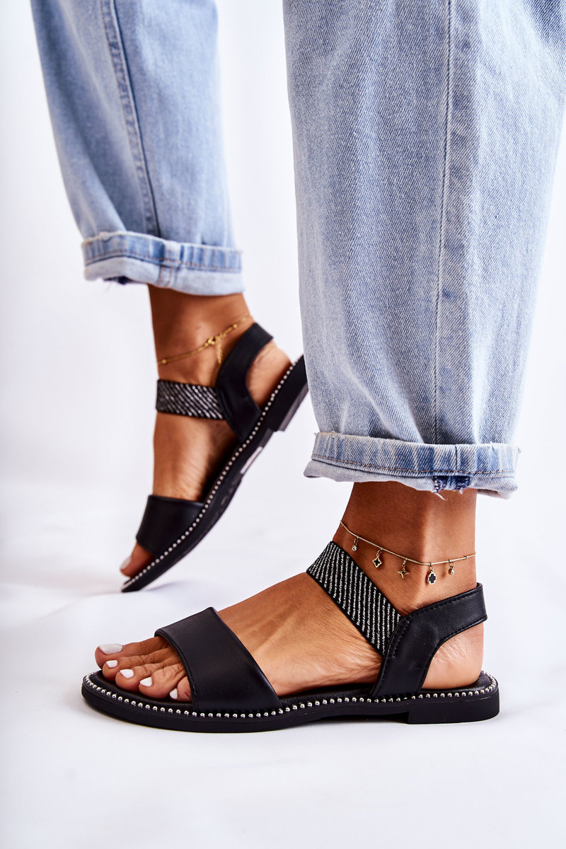 Damskie Klasyczne Sandały Na Płaskim Obcasie Czarne Catis