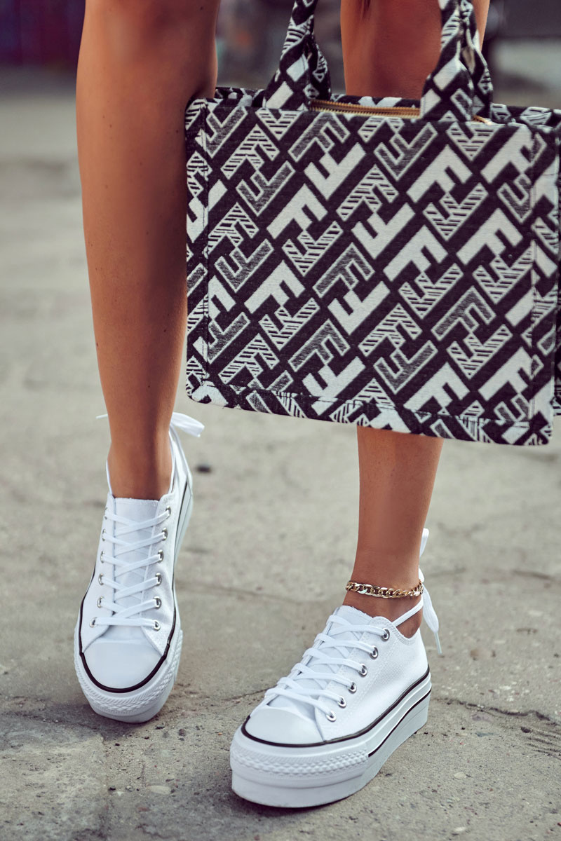 Klasyczne trampki w nowej odsłonie! Zostały osadzone na masywnej platformie wykonanej z gumowego tworzywa. Buty posiadają antypoślizgową podeszwę. Nosek zaokrąglony, wzmocniony gumowym tworzywem. Model klasycznie wiązany. Trampki powinny znaleźć się w szafie każdej kobiety! Są uniwersalnym i wygodnym dodatkiem do stylizacji. Wkładka materiałowa zapewnia komfort podczas użytkowania. Przy wyborze rozmiaru prosimy sugerować się tabelą rozmiarów.