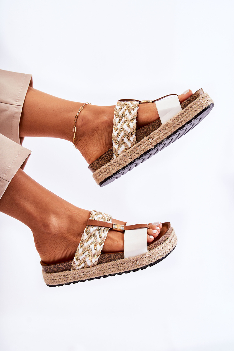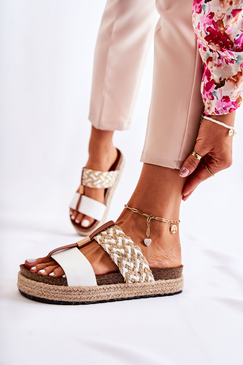 Klapki na platformie, wykończone jutowym warkoczem. Z szerokimi paskami z eko skóry i juty. Wyposażone w miękką, komfortową wkładkę z eko zamszu.Te klapki idealnie sprawdzą się do basicowych stylizacji, sukienek boho czy nawet klasycznych jeansów. Przy wyborze rozmiaru prosimy kierować się tabelą rozmiarów.
