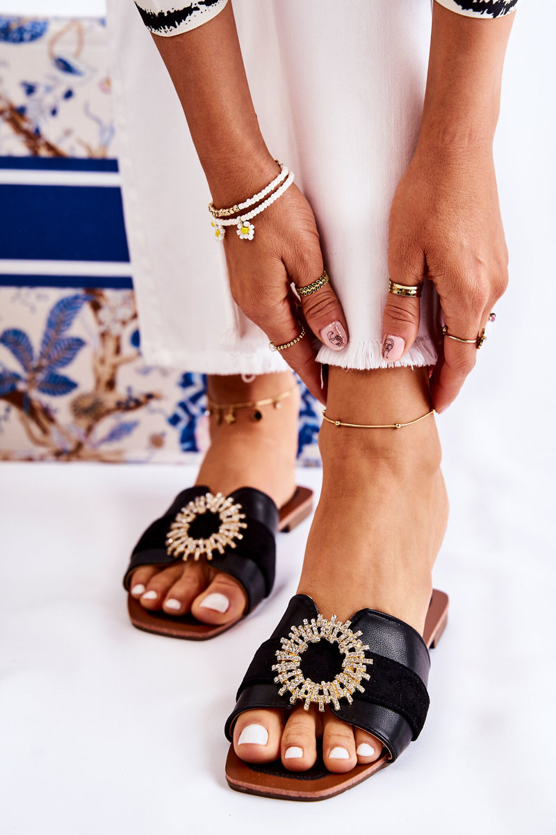 Damskie Wygodne Klapki Z Ozdobą Czarne Ginera