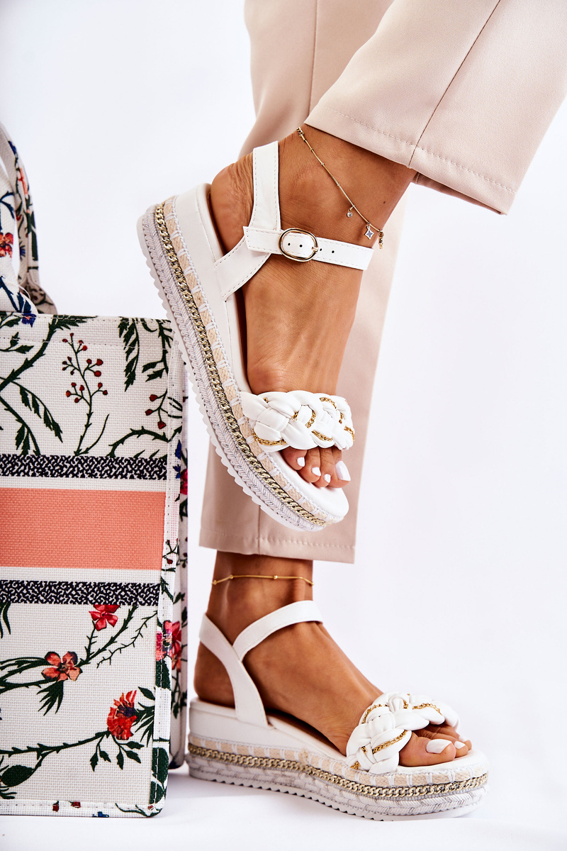 Damskie Plecione Sandały Na Koturnie Białe Chaves