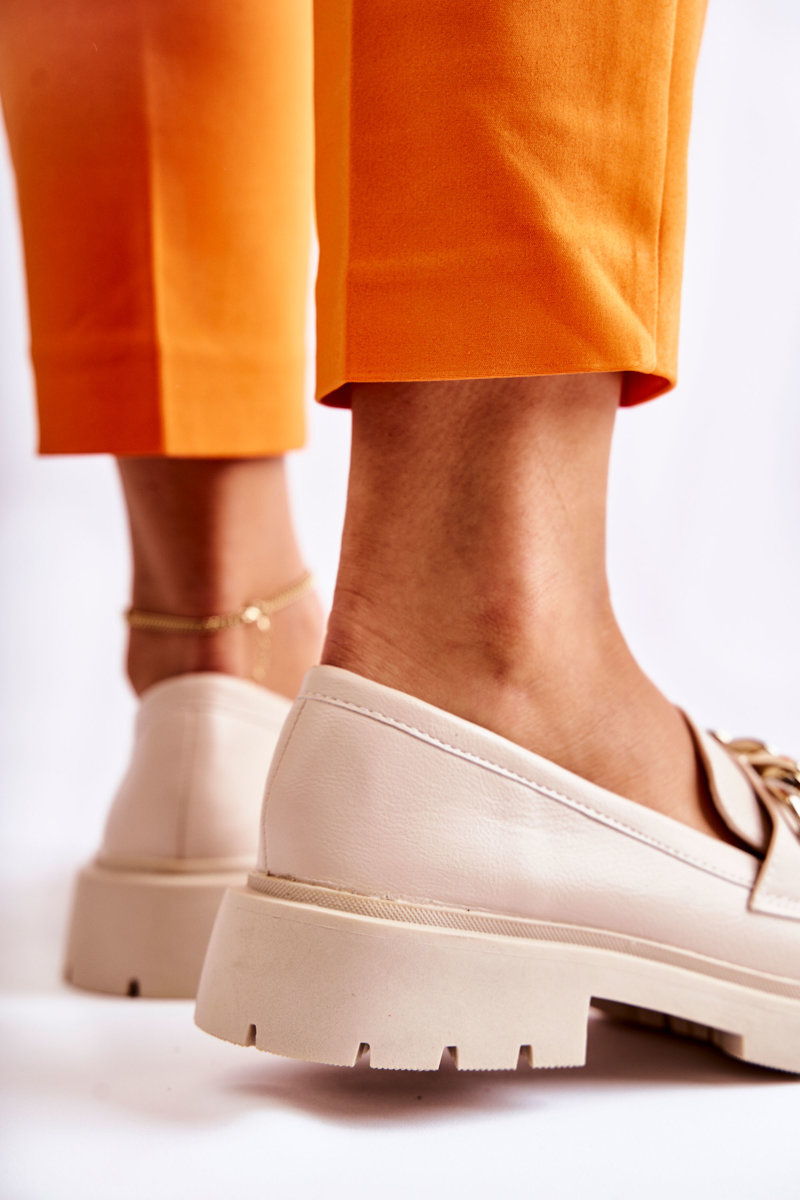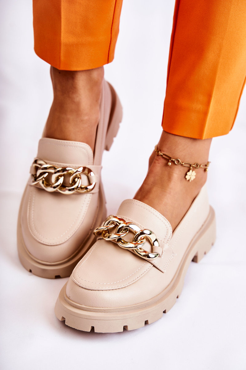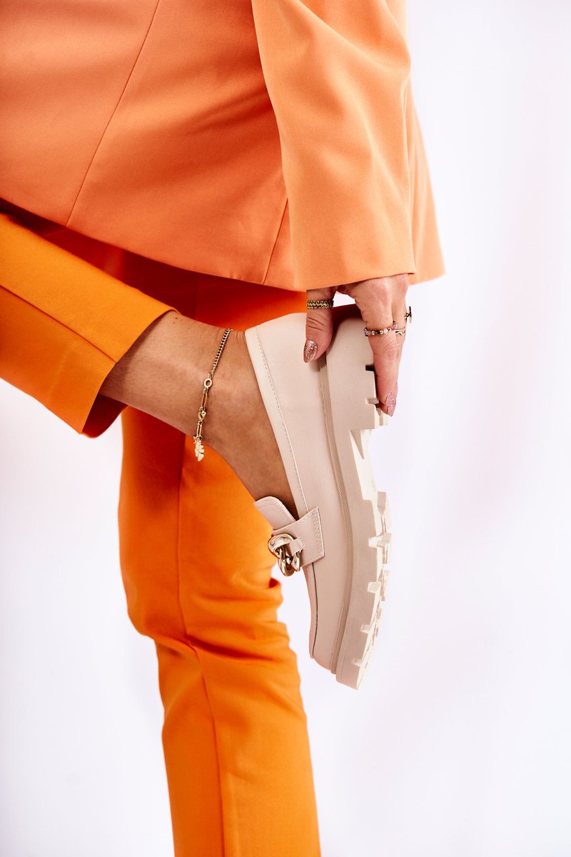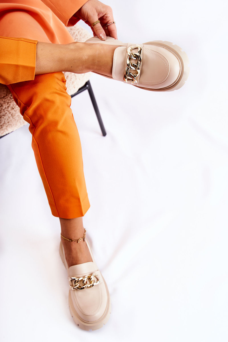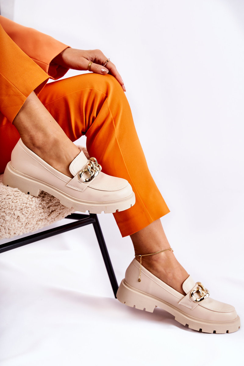 Skórzane Półbuty Loafery Łańcuch Jasnobeżowe Amicable