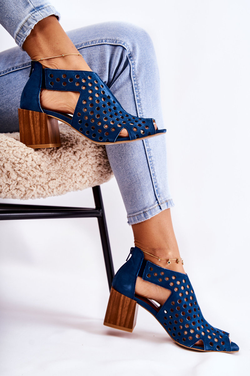 Ażurowe Botki Na Słupku Maciejka 04593-17 Granatowe