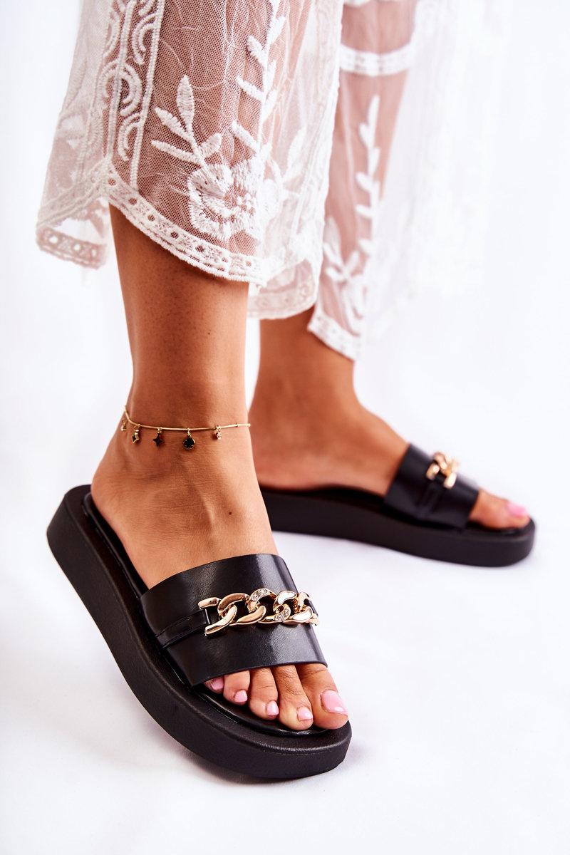 Modne Klapki Z Łańcuchem Czarne Megosa