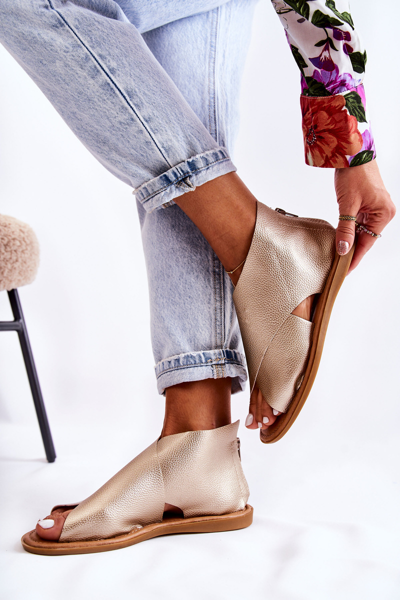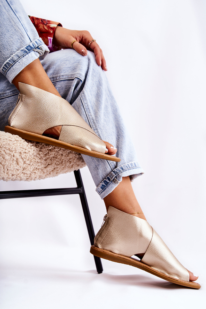 Damskie Skórzane Sandały Na Szeroką Stopę Złote Catalise