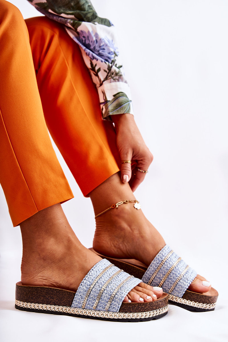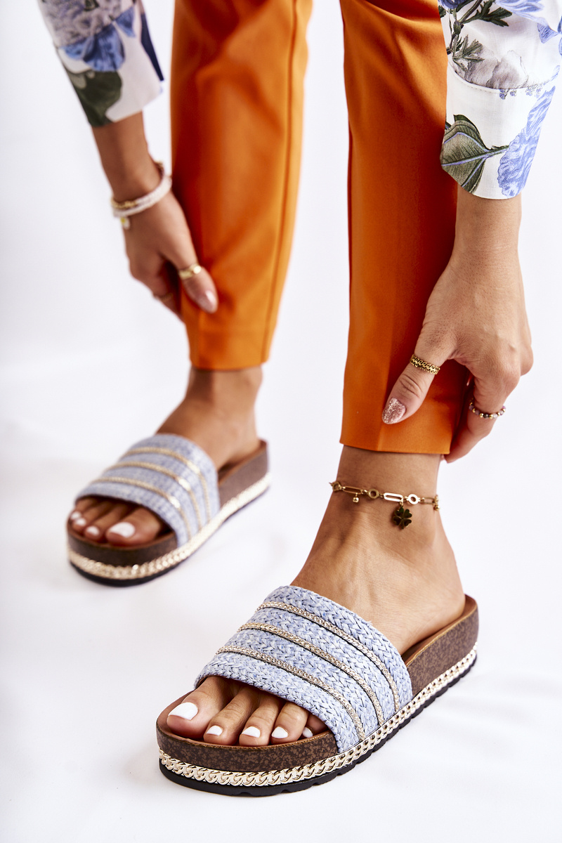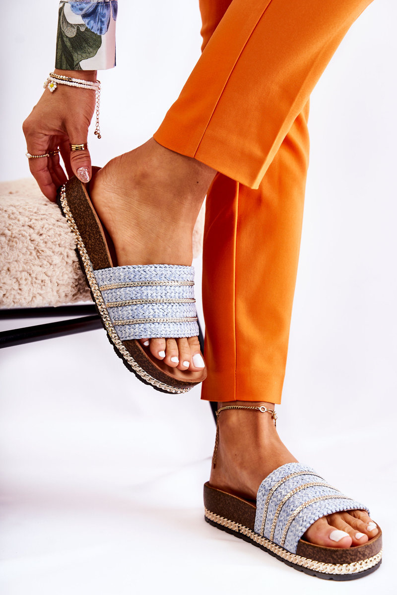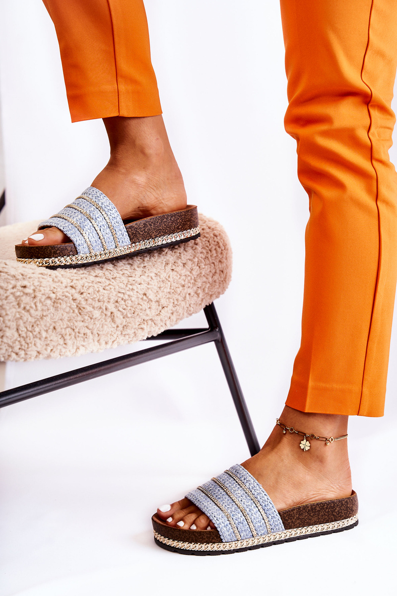 Damskie Klasyczne Klapki Z Łańcuszkiem Niebieskie Maddy