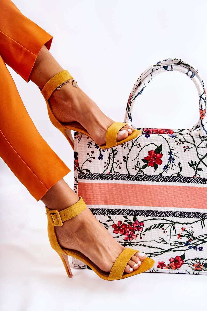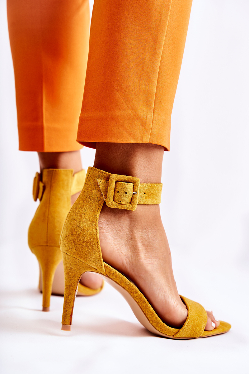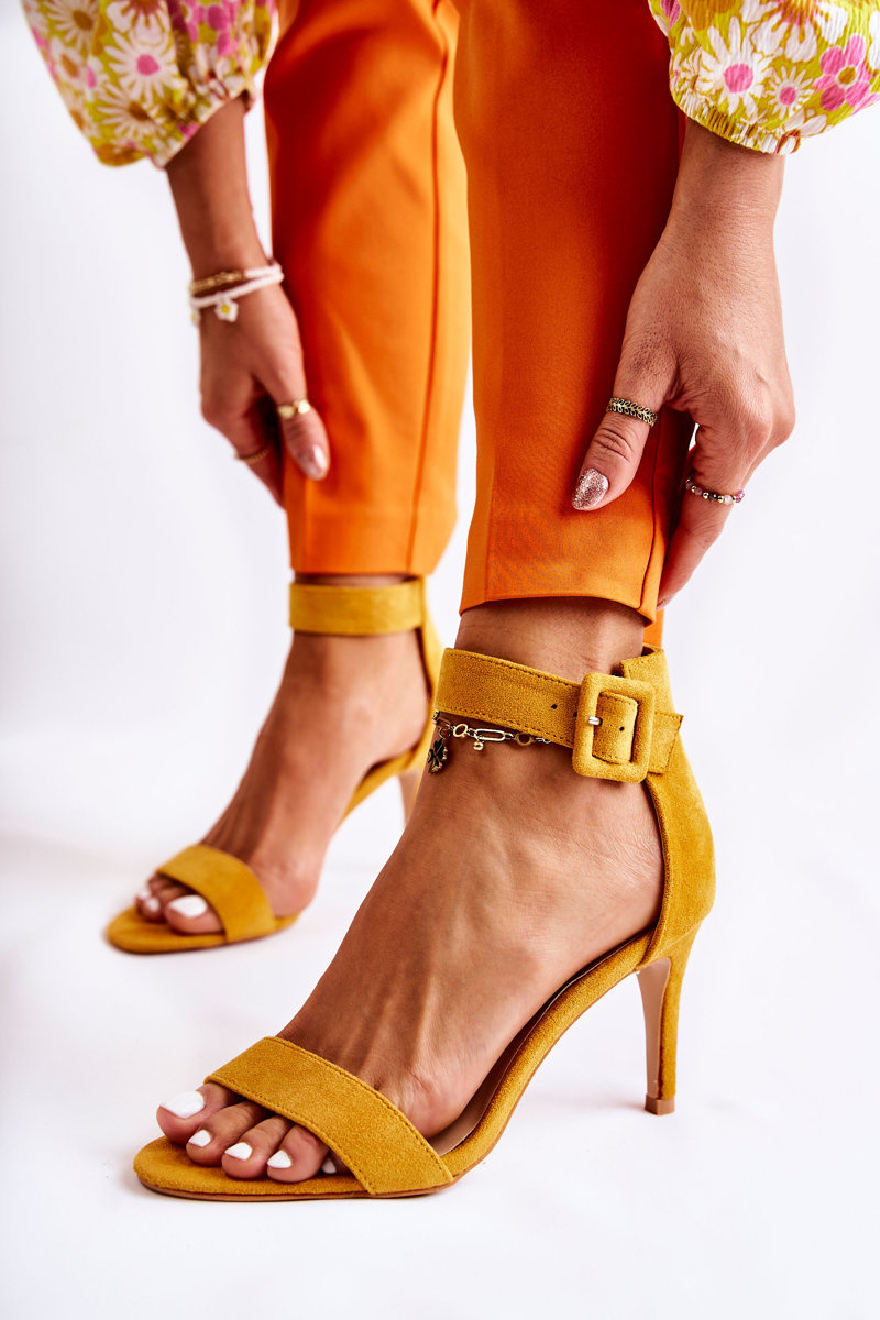 Damskie Zamszowe Sandały Na Szpilce Żółte Marconi