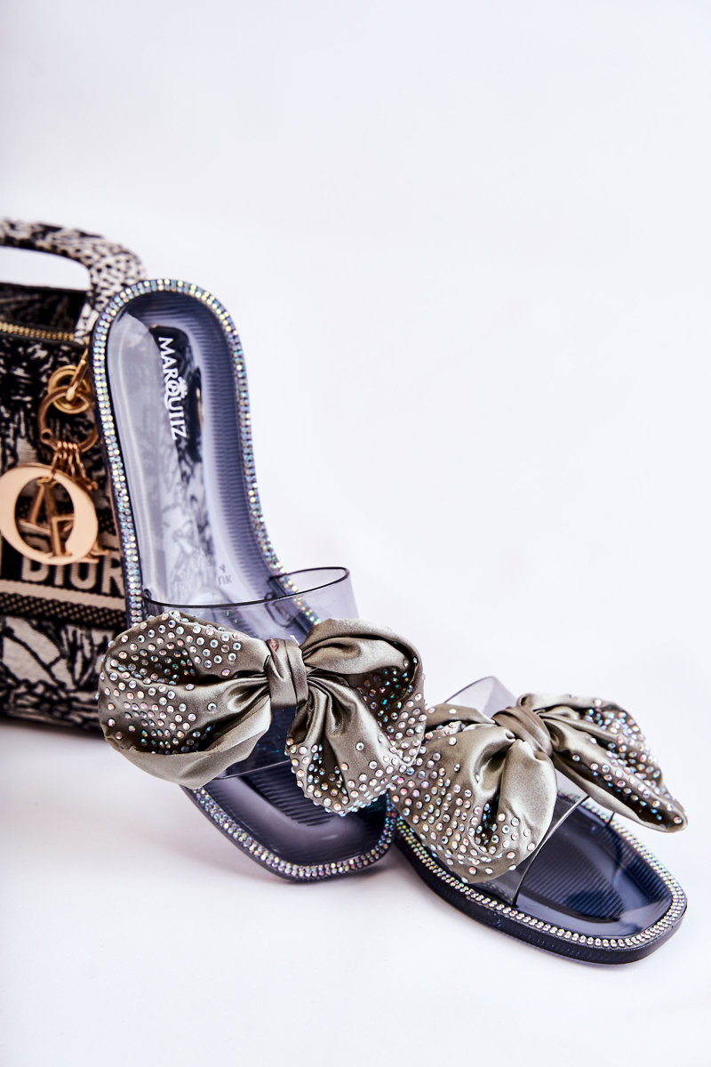 Damskie Gumowe Klapki Z Kokardą Czarno-Szare Meriden