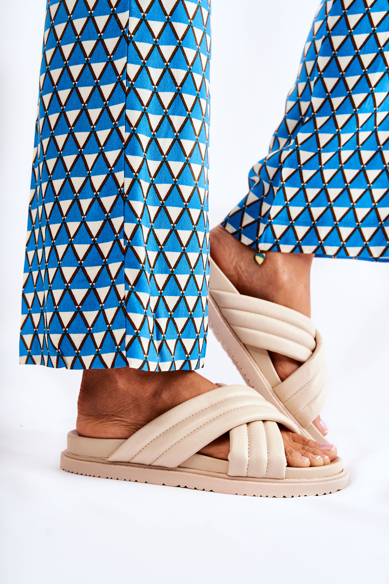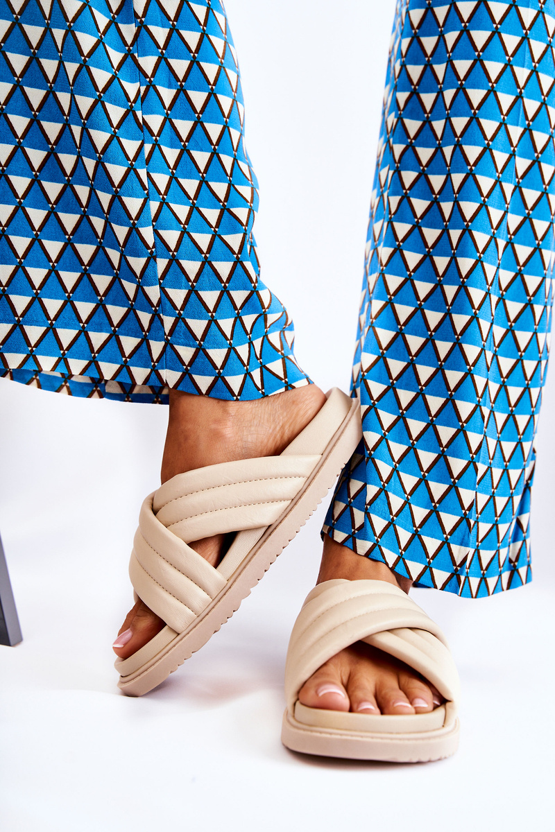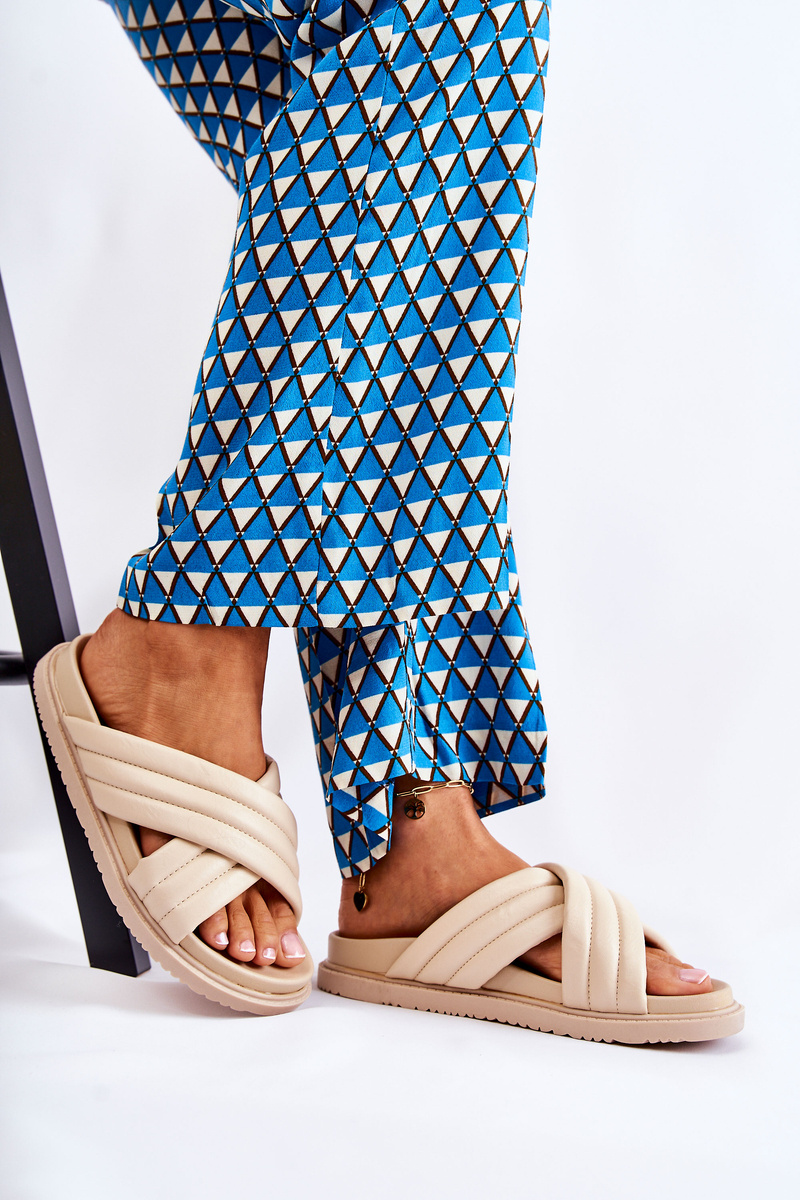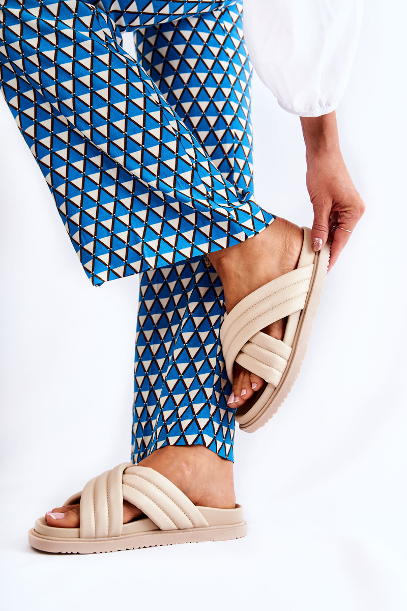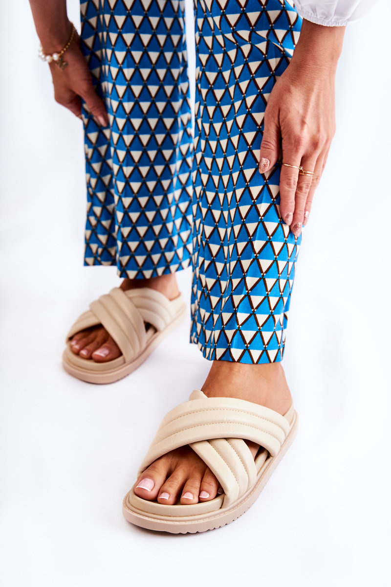 Klasyczne Damskie Klapki Skórzane Beżowe Daron