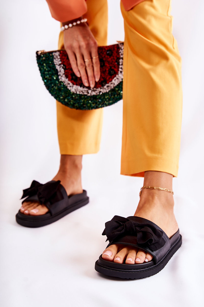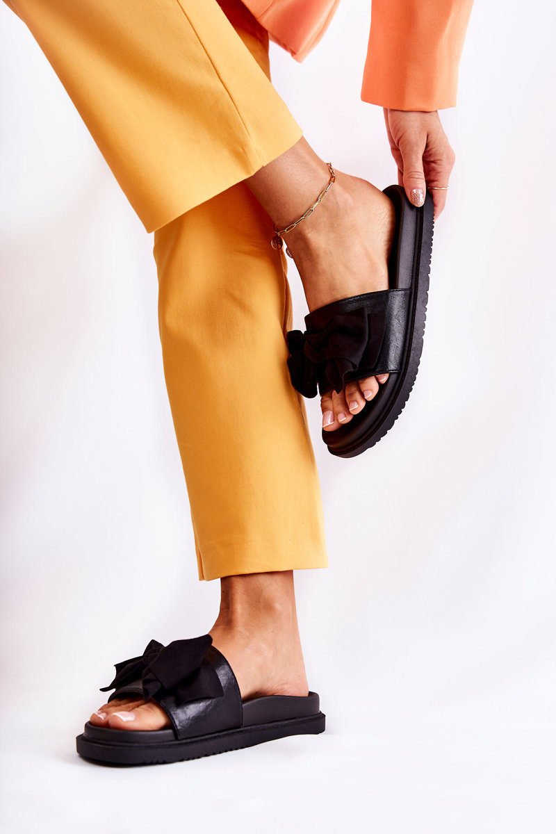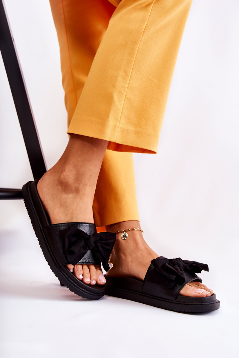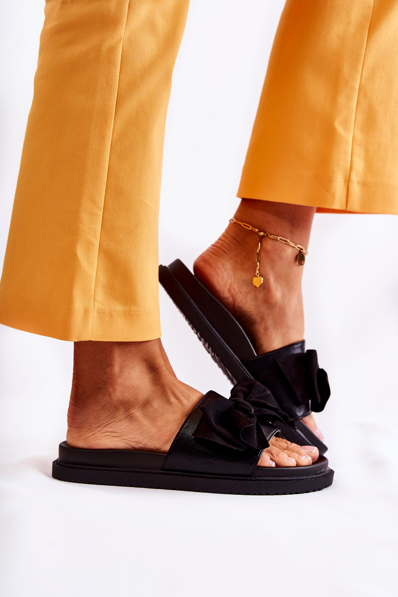 Klasyczne Damskie Klapki Skórzane Z Kokardą Czarne Dessy