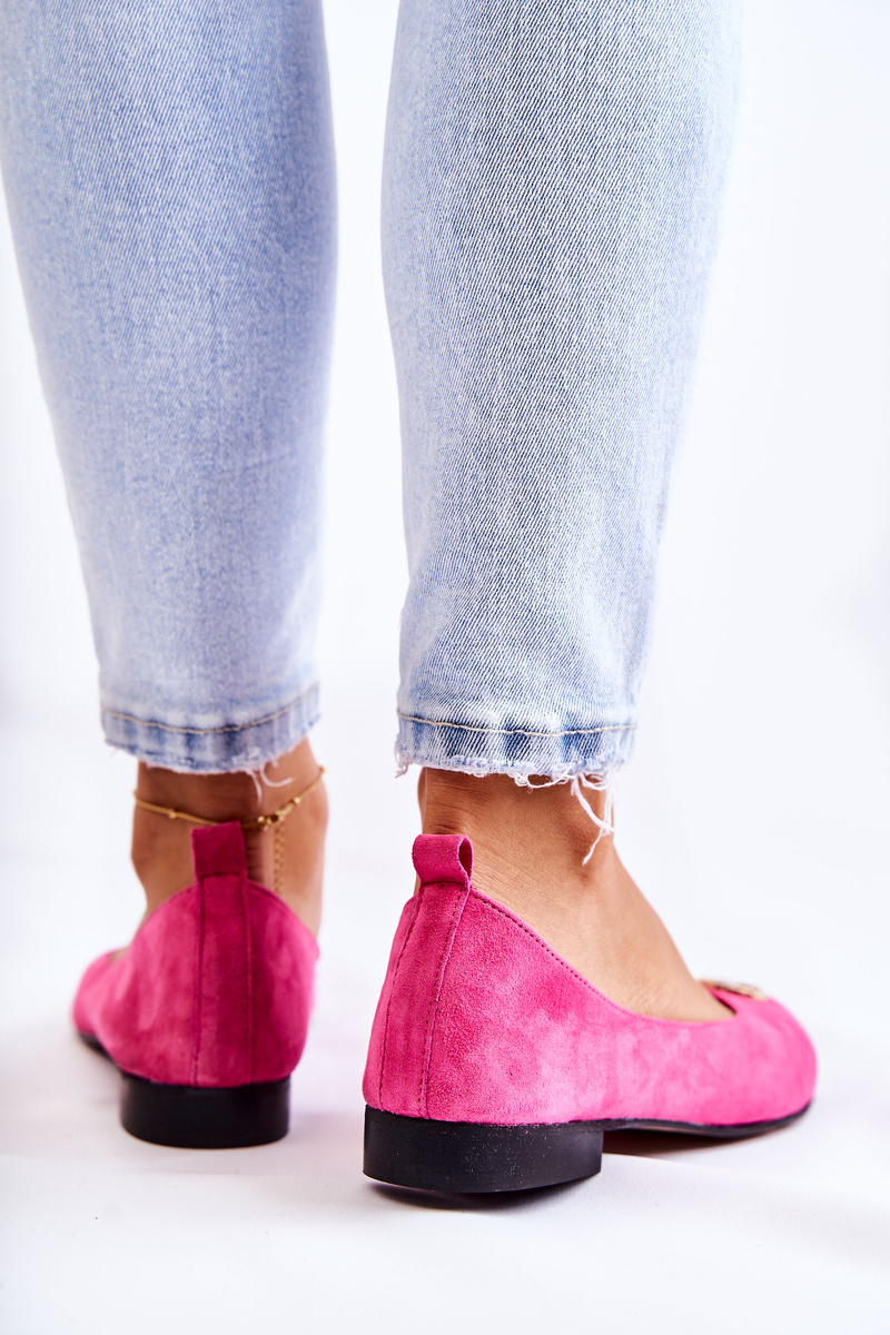 Damskie Zamszowe Baleriny Z Ozdobą Nicole 2746 Fuksja